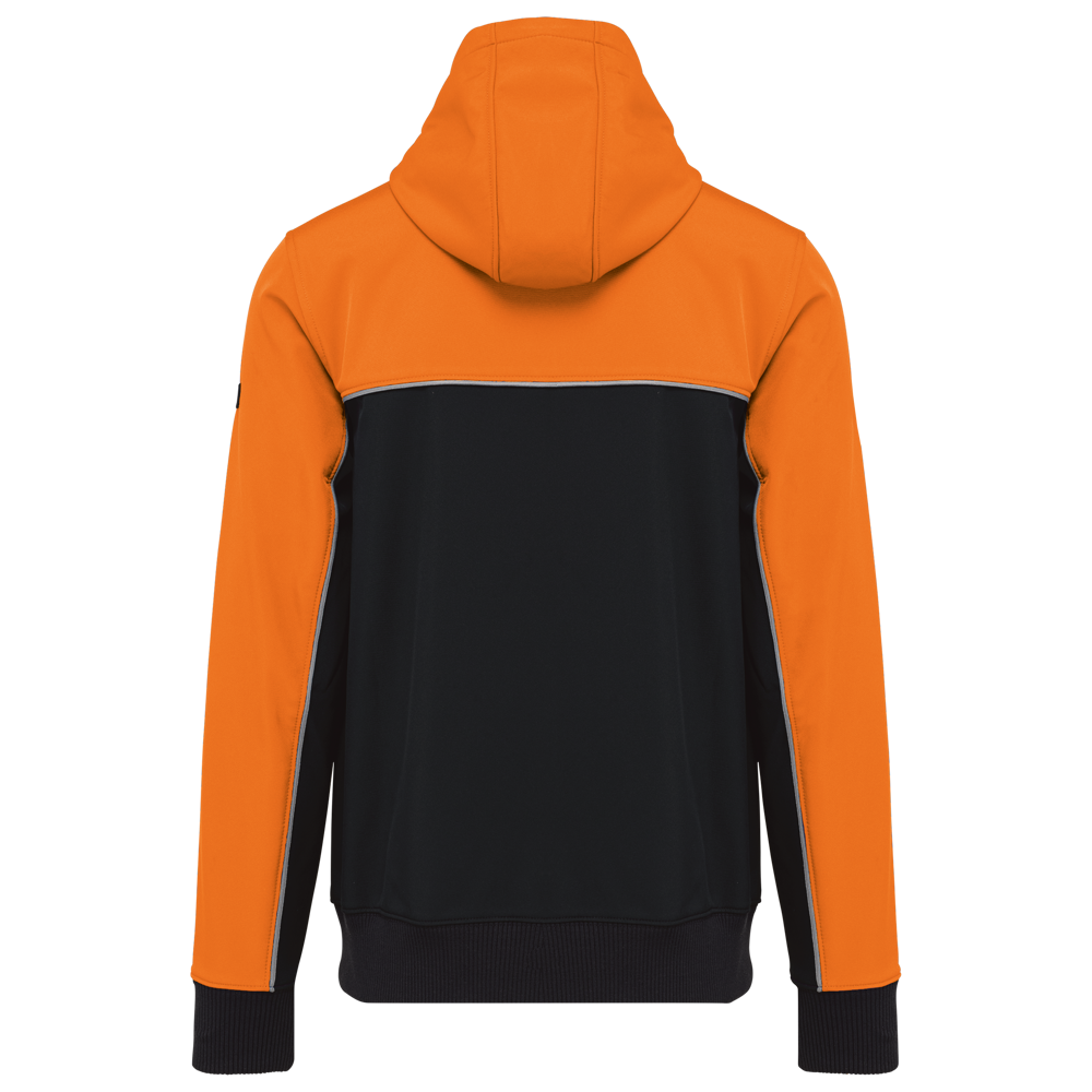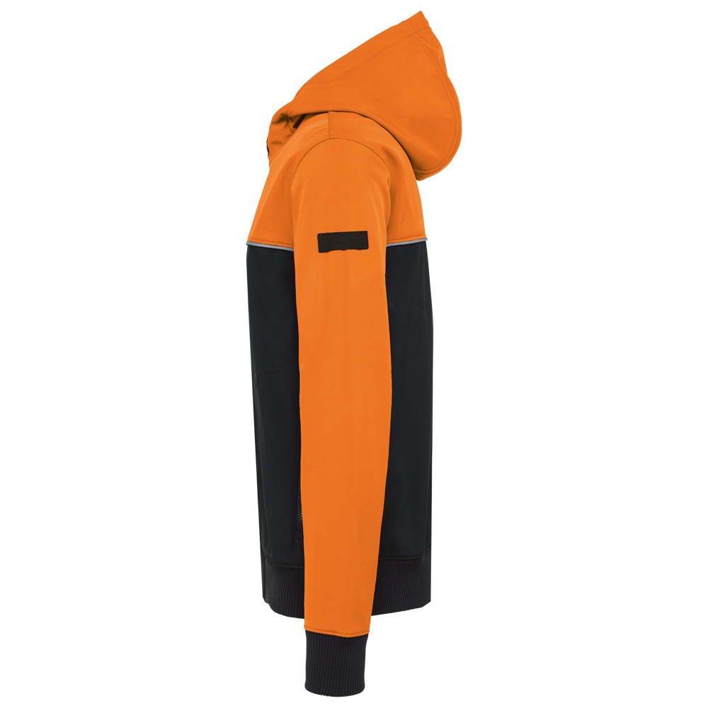 96% polyester / 4% elasthan. 3-laagse ademende stof 3000 g/m²/24 u en waterdicht 5000 mm. Buitenkant: 96% polyester / 4% elasthan. Tussenlaag: ademend en waterdicht membraan. Binnenlaag: microfleece. BIONIC FINISH ® ECO behandeling (waterdicht, zonder fluor voor optimale prestaties). Plastic ritssluiting met ton-sur-ton ritstrekker. 2 ritszakken met ritstrekker aan de voorkant. 3-delige, verstelbare capuchon met stoppers in de naad. Contrasterend nektape met ophanglint in de kraag. Elastische penhouder met 3 vakken op de linkermouw. Contrasterende bies tussen de tweekleurige delen van het kledingstuk (lichaam, voorkant mouwen en rug). Gevoerde 2x2 ribboord met elasthan aan de mouwuiteinden en de boord. Tear-away merklabel.