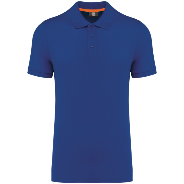 Effen kleuren : 60% katoen / 40% polyester. Gemaakt van 60% biologisch katoen en 40% gerecycled polyester. Kleur Oxford Grey : 90% katoen / 10% viscose. Gemaakt van 90% biologisch katoen. Alle kleuren zijn gemaakt van biologisch katoen. Piquétricot. Wassen op 60°. Rechte snit. Kraag en mouwuiteinden in 1x1 ribboord met nektape met visgraatmotief in contrasterend oranje. Ton-sur-ton lijst met 3 knopen. 1ste knoopsgat horizontaal. Zijsplitten met visgraatmotief in contrasterend oranje. Dubbel stiksel aan de onderkant. Tear-away merklabel voor eenvoudige personalisatie.