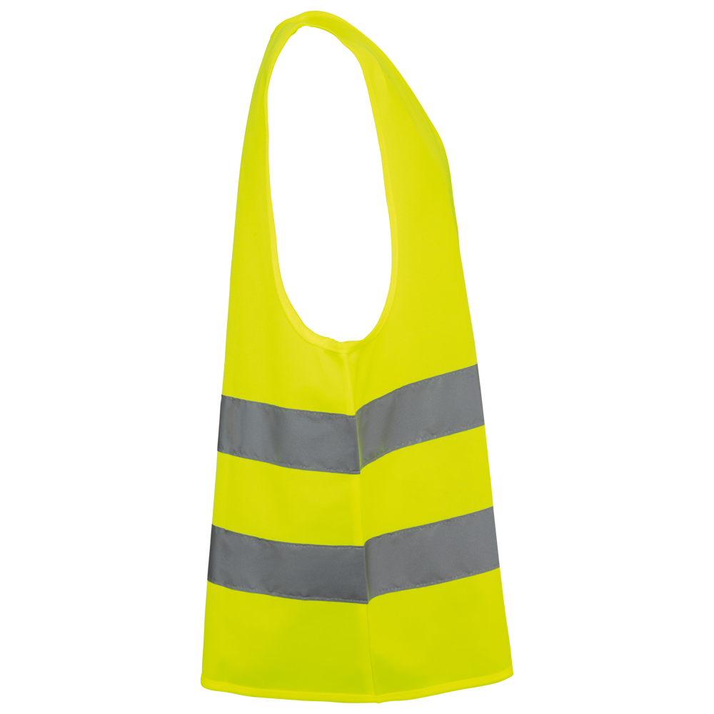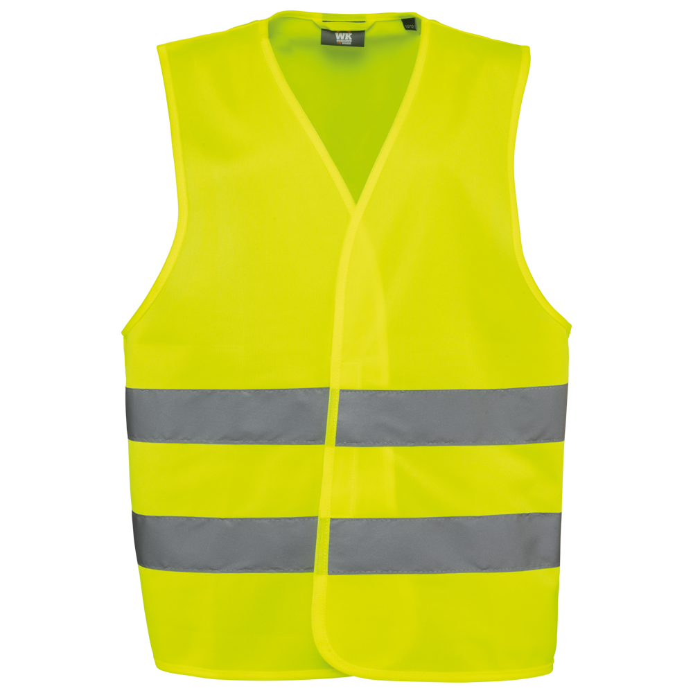 100% polyester. Polytricot. Easy care behandeling. Wasbaar op 40°C (25 wasbeurten). Ruime pasvorm. 2 horizontaal genaaide reflecterende banden van 5 cm op het lichaam. Klittenbandsluiting (1 verticale en 2 horizontale) voor optimale afstelling. Ophanglus aan de binnenkant van de kraag. Afwerkingsbies in ton sur ton. PBM Klasse II. Normen NF EN ISO 13688:2013 + NF EN ISO 13688/A1:2021 (Algemene eisen voor beschermende kleding). NF EN 17353:2020: Type AB3 (Beschermende kleding - Verbeterde zichtuitrusting voor situaties met een gematigd risico). Afneembaar merketiket.
