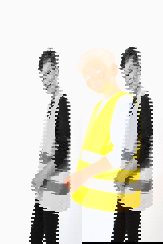100% polyester. Polytricot. Easy care behandeling. Wasbaar op 40°C (25 wasbeurten). Ruime pasvorm. 2 horizontaal genaaide reflecterende banden van 5 cm op het lichaam. Klittenbandsluiting (1 verticale en 2 horizontale) voor optimale afstelling. Ophanglus aan de binnenkant van de kraag. Afwerkingsbies in ton sur ton. PBM Klasse II. Normen NF EN ISO 13688:2013 + NF EN ISO 13688/A1:2021 (Algemene eisen voor beschermende kleding). NF EN 17353:2020: Type AB3 (Beschermende kleding - Verbeterde zichtuitrusting voor situaties met een gematigd risico). Afneembaar merketiket.