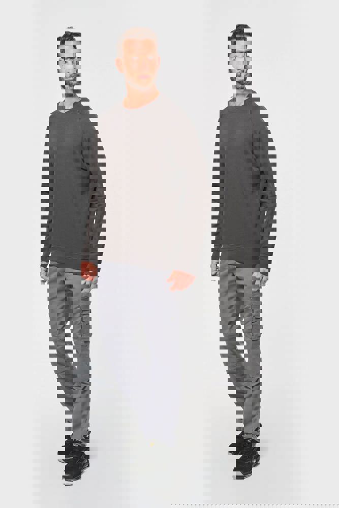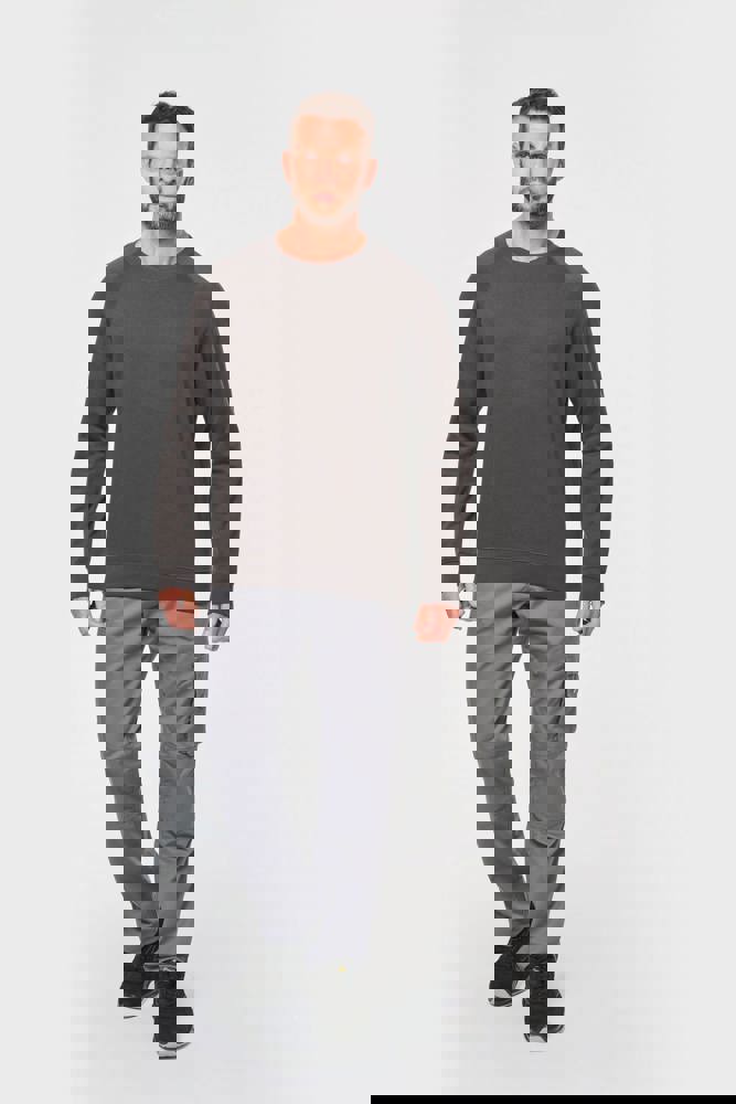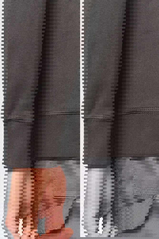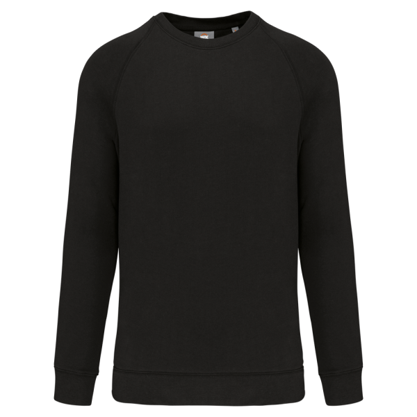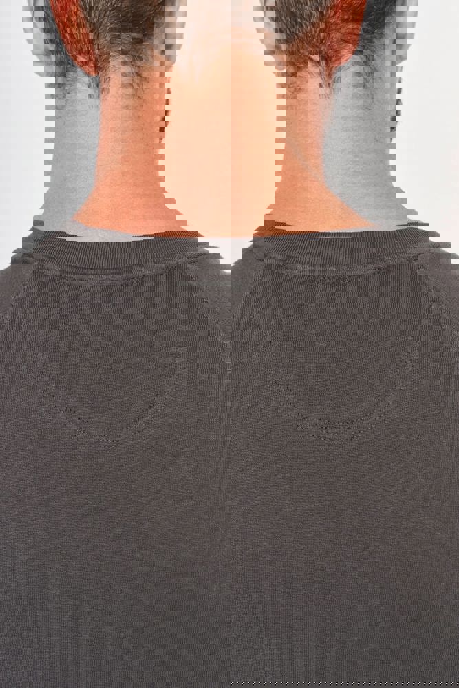 100% katoen. Geborsteld fleece 3 draden. Wassen op 60°. Rechte snit. Raglanmouwen. Ton-sur-ton nektape met visgraatmotief aan de binnenkant. Ronde hals. 1x1 ribboord in buisconstructie voor een betere afwerking aan de hals, de mouwuiteinden en de onderkant. Inzetstuk in halve maan in de kraag. Labels in katoen.