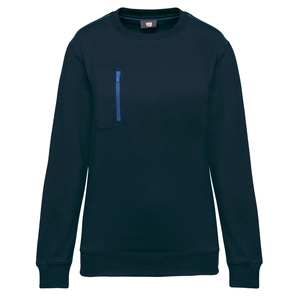 70% polyester / 30% katoen. Gekamd katoen. Aan de binnenkant geborsteld LSF-fleece (Low Shrinkage Fleece) met 3 draden. Vortex-garen. Wasbaar op 60 °C. Rechte snit. Ronde hals met 1x1 ribboord en ton-sur-ton nektape met contrasterende bies. Halvemaanvormige halsopening op de achterkant, voor eenvoudige personalisatie van het merk aan de binnenkant. Contrasterende bies op de schouders. Borstzakje aan de rechterkant, met een contrasterende rits van nylon en een contrasterende ritstrekker. Ton-sur-ton dubbel stiksel op de omtrek van de zak. Tear-away merklabel.