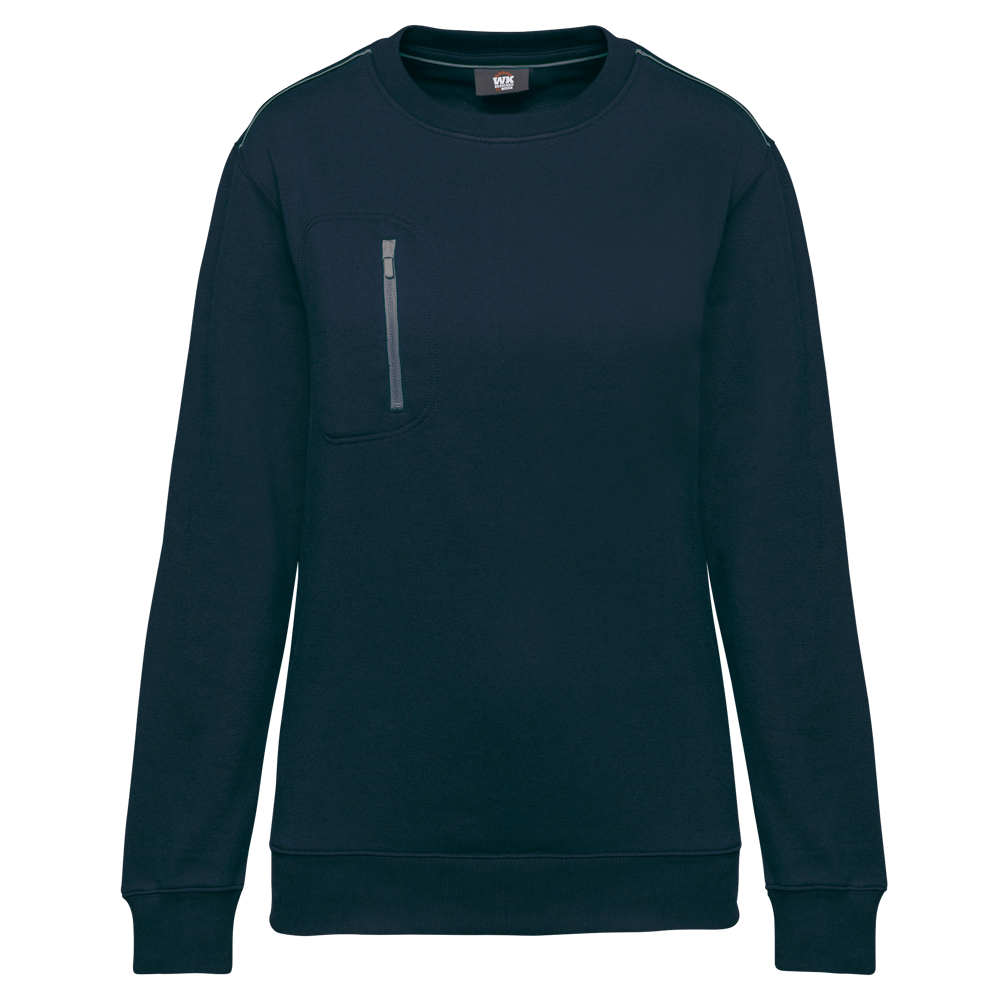70% polyester / 30% katoen. Gekamd katoen. Aan de binnenkant geborsteld LSF-fleece (Low Shrinkage Fleece) met 3 draden. Vortex-garen. Wasbaar op 60 °C. Rechte snit. Ronde hals met 1x1 ribboord en ton-sur-ton nektape met contrasterende bies. Halvemaanvormige halsopening op de achterkant, voor eenvoudige personalisatie van het merk aan de binnenkant. Contrasterende bies op de schouders. Borstzakje aan de rechterkant, met een contrasterende rits van nylon en een contrasterende ritstrekker. Ton-sur-ton dubbel stiksel op de omtrek van de zak. Tear-away merklabel.