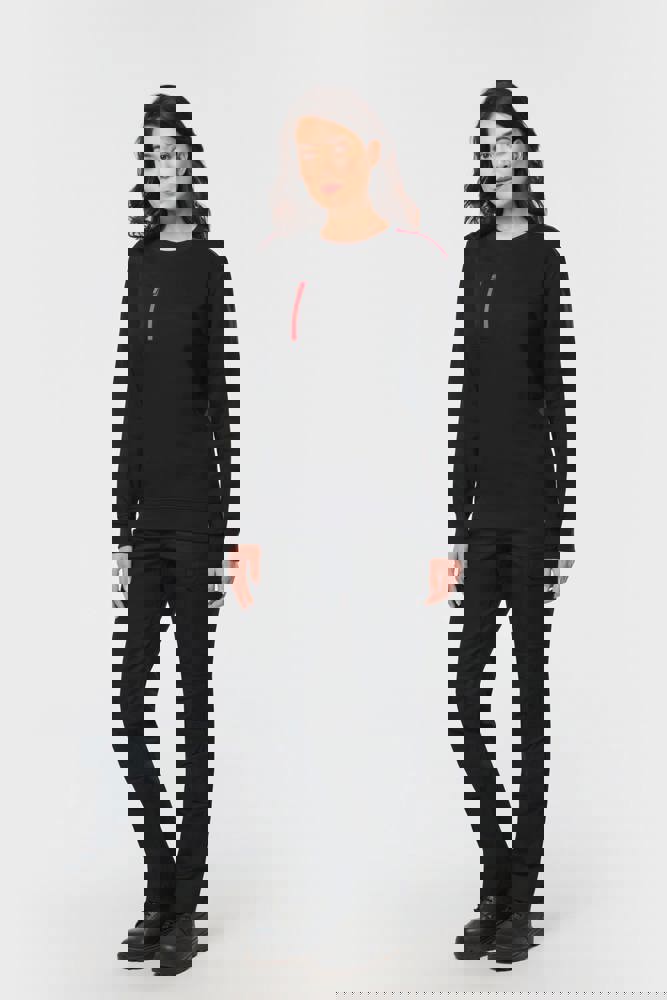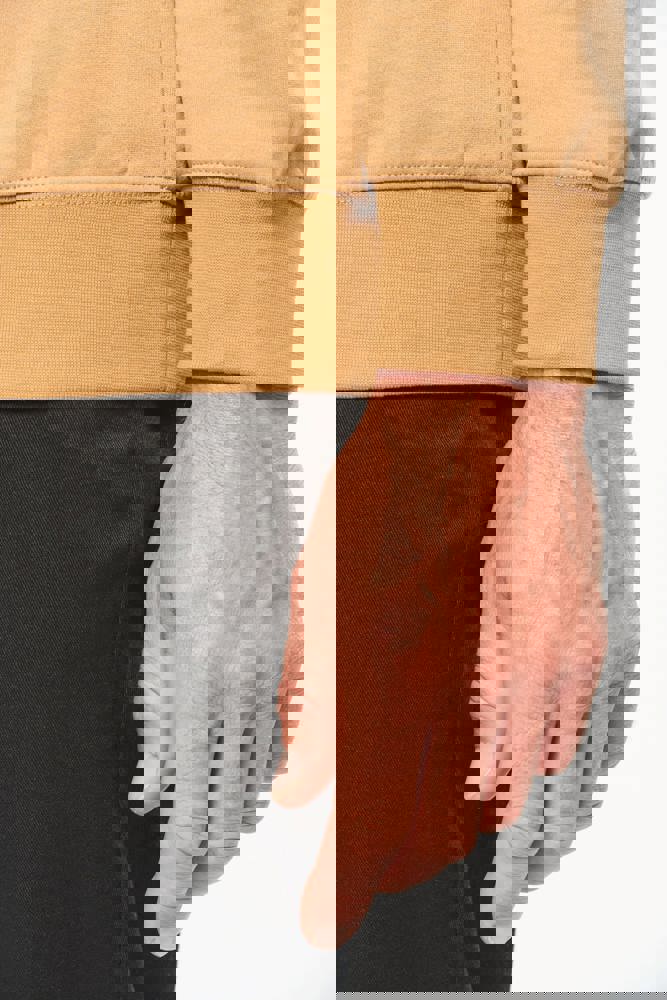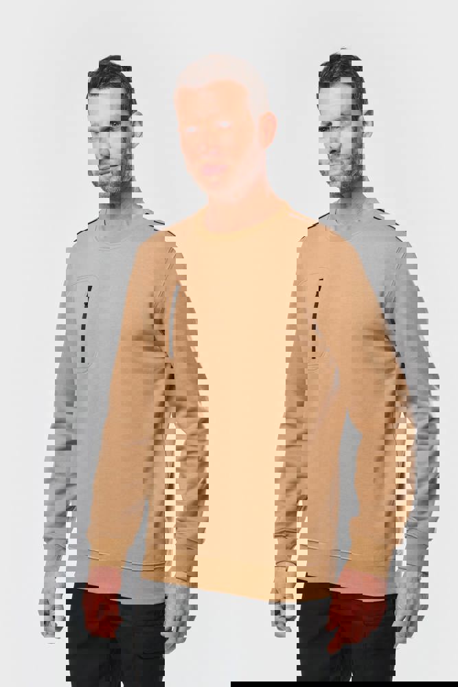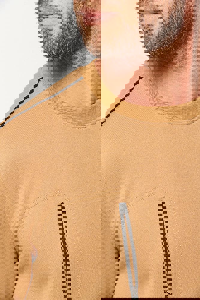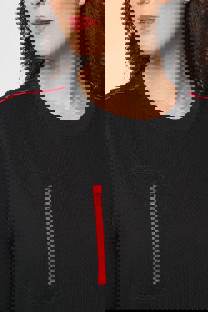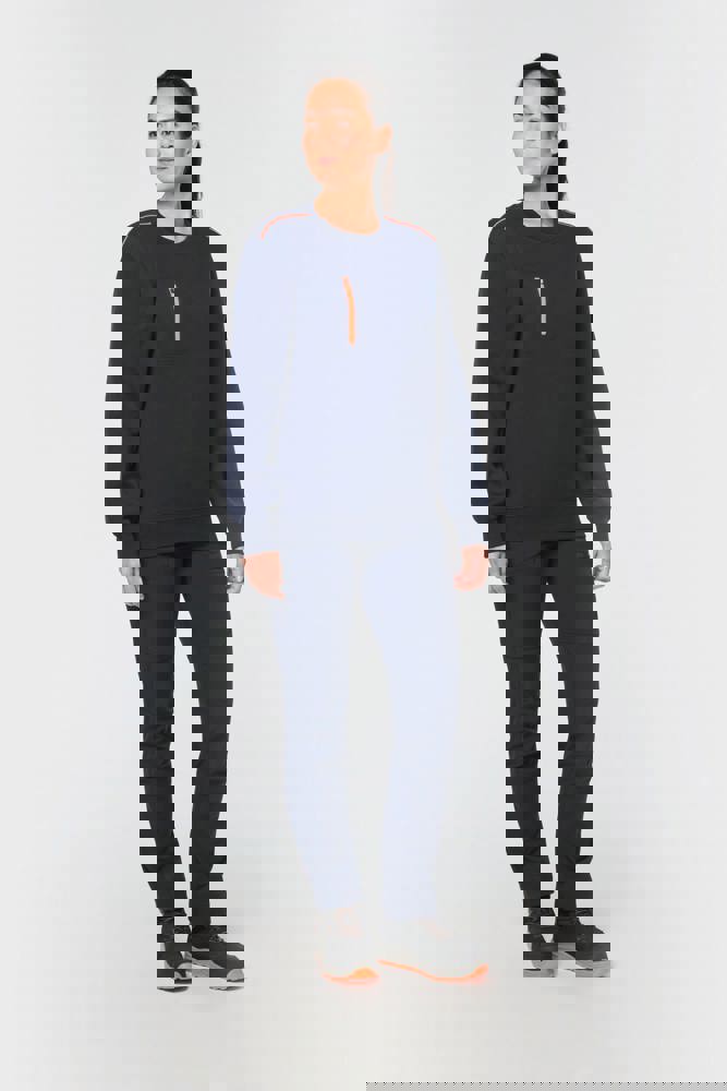 70% polyester / 30% katoen. Gekamd katoen. Aan de binnenkant geborsteld LSF-fleece (Low Shrinkage Fleece) met 3 draden. Vortex-garen. Wasbaar op 60 °C. Rechte snit. Ronde hals met 1x1 ribboord en ton-sur-ton nektape met contrasterende bies. Halvemaanvormige halsopening op de achterkant, voor eenvoudige personalisatie van het merk aan de binnenkant. Contrasterende bies op de schouders. Borstzakje aan de rechterkant, met een contrasterende rits van nylon en een contrasterende ritstrekker. Ton-sur-ton dubbel stiksel op de omtrek van de zak. Tear-away merklabel.