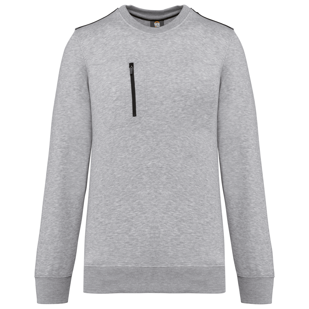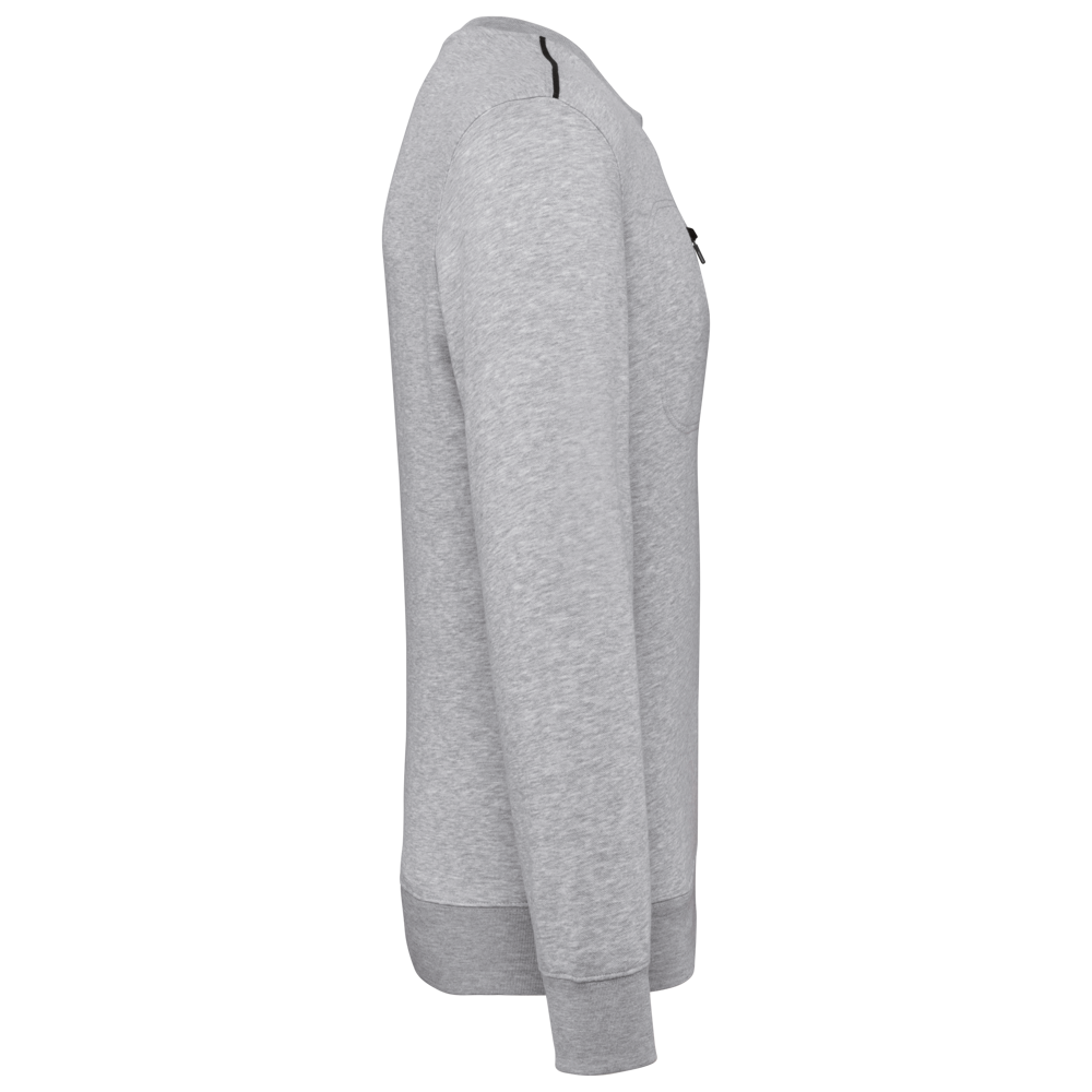70% polyester / 30% katoen. Gekamd katoen. Aan de binnenkant geborsteld LSF-fleece (Low Shrinkage Fleece) met 3 draden. Vortex-garen. Wasbaar op 60 °C. Rechte snit. Ronde hals met 1x1 ribboord en ton-sur-ton nektape met contrasterende bies. Halvemaanvormige halsopening op de achterkant, voor eenvoudige personalisatie van het merk aan de binnenkant. Contrasterende bies op de schouders. Borstzakje aan de rechterkant, met een contrasterende rits van nylon en een contrasterende ritstrekker. Ton-sur-ton dubbel stiksel op de omtrek van de zak. Tear-away merklabel.