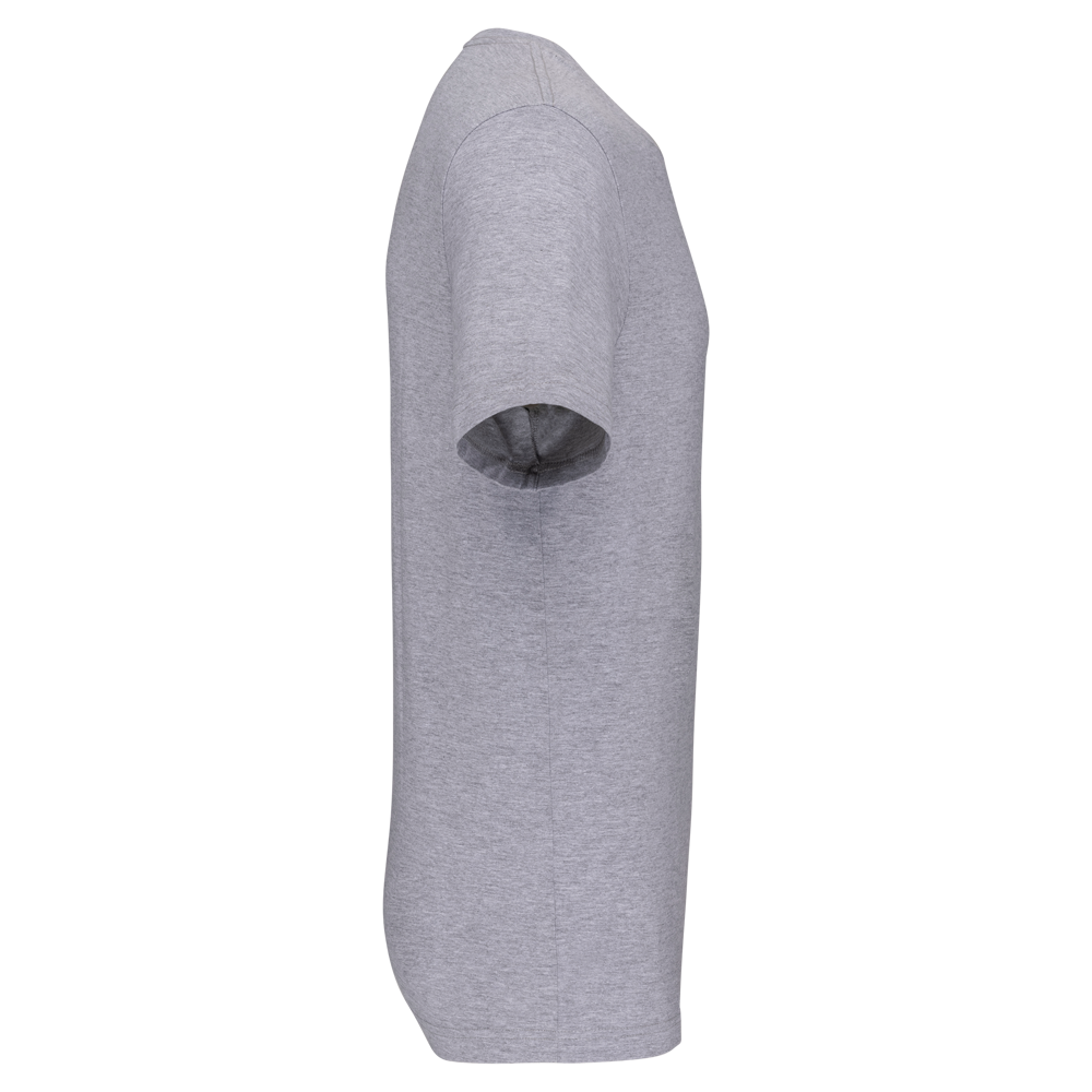 Effen kleuren : 60% katoen / 40% polyester. Gemaakt van 60% biologisch katoen en 40% gerecycled polyester. Kleur Oxford Grey : 90% katoen / 10% viscose. Gemaakt van 90% biologisch katoen. Alle kleuren zijn gemaakt van biologisch katoen. Zachte enzymgewassen stof. Wassen op 60°. Rechte snit. Ronde halsopening met 1x1 ribboord. Nektape met visgraatmotief in contrasterend oranje (verlengde van rug-schouder behalve de kleur wit). Verstevigde schoudernaad. Tear-away merklabel voor eenvoudige personalisatie.