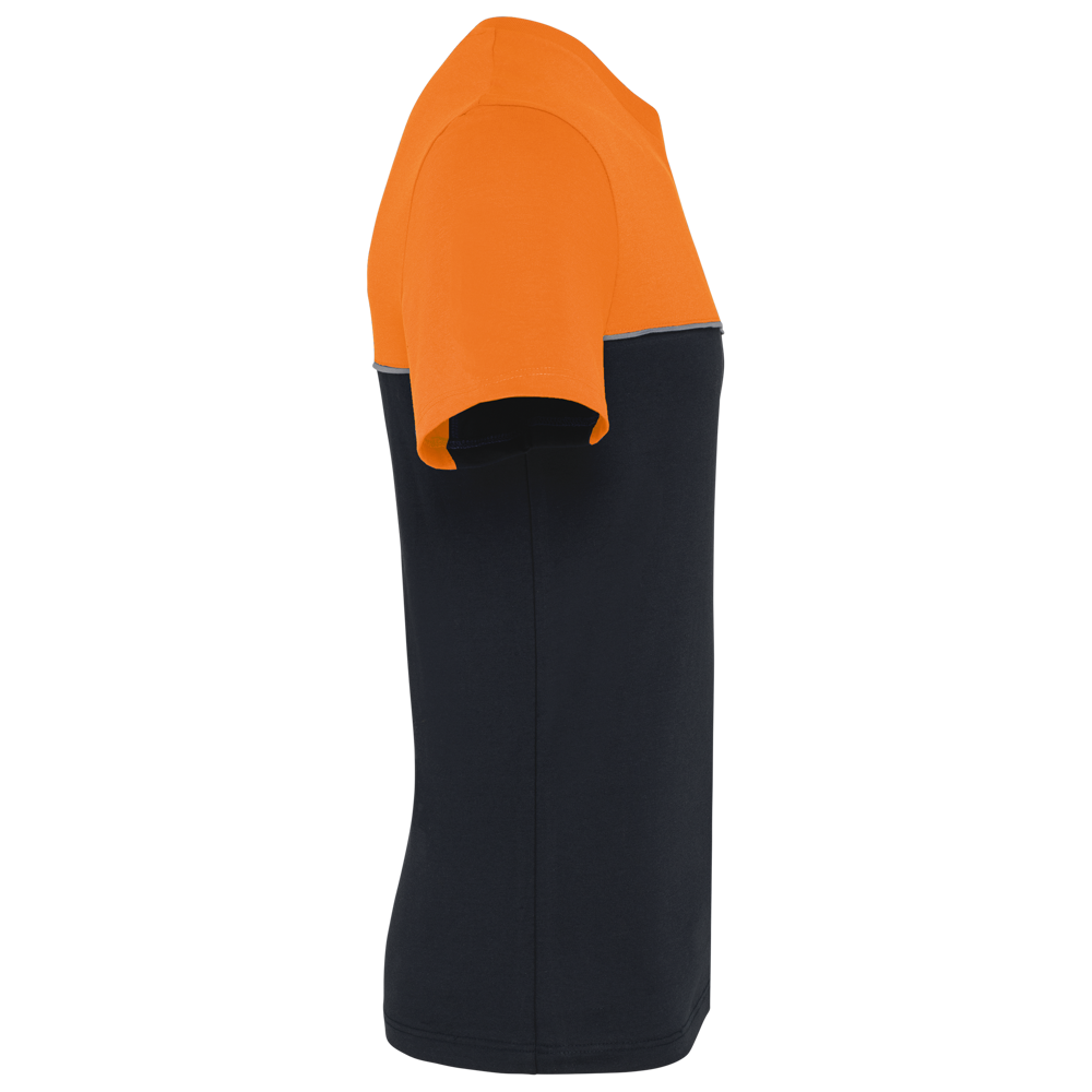 60% katoen / 40% polyester. Gemaakt van 60% gekamd katoen en 40% gerecycleerd polyester. Vortex-garen. Jersey. Anti-pluisbehandeling. Wasbaar op 60 °C. Rechte snit. Ronde halsopening in 1x1 ribboord met elasthan en contrasterende nektape met visgraatmotief.Contrasterende bies tussen de tweekleurige delen van het kledingstuk (lichaam, voorkant mouwen en rug). Dubbel stiksel aan mouwuiteinden en onderkant. Tear-away merklabel.