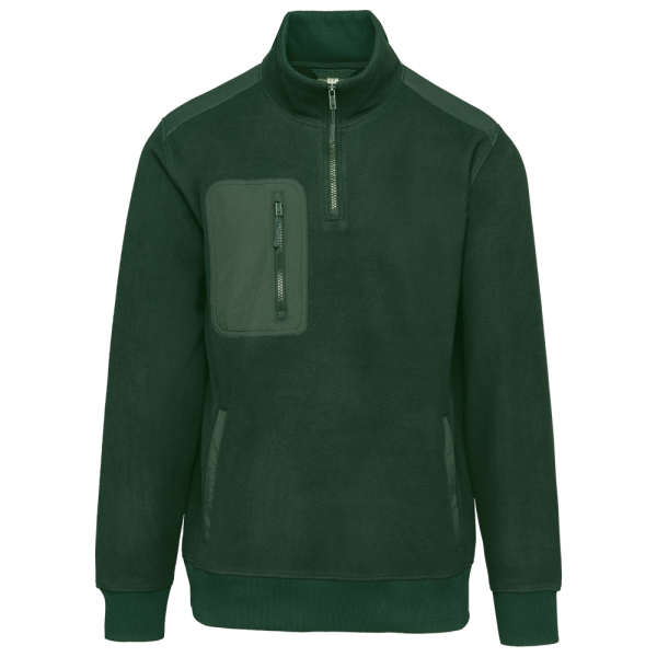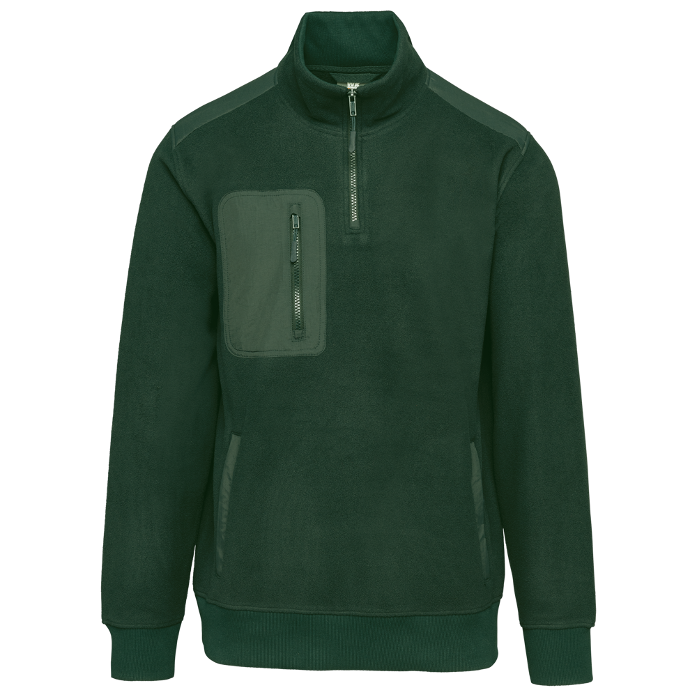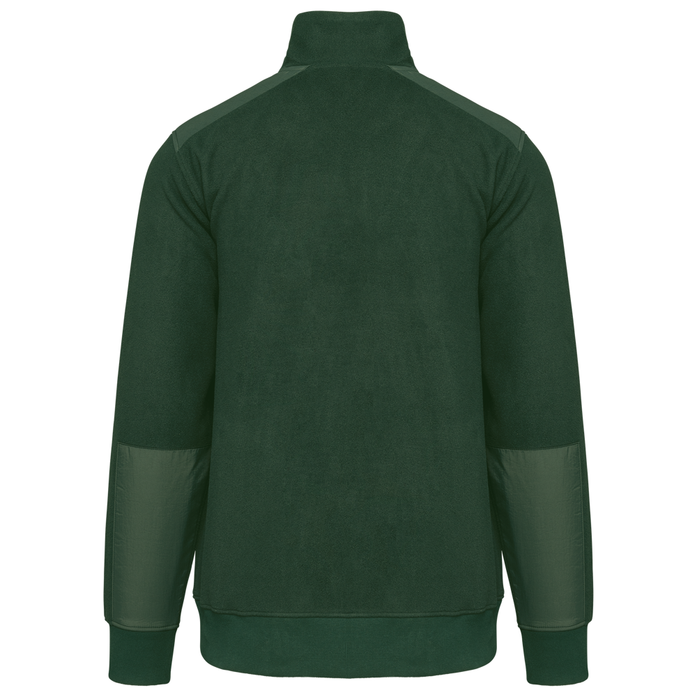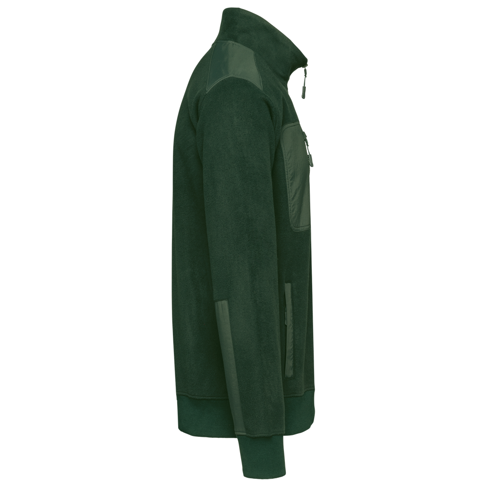 100% gerecycleerd polyester post-consumer. Rechte snit. 2 ritszakken met bies in taslan met ritstrekker aan de voorkant. 1 afgerond borstzakje met rits en ritstrekker in taslan met toon-op-toon stiksel rechts (bij het dragen). Kraag gevoerd met 2x2 ribtricot en rits van gerecycleerd plastic + ophanglus in de kraag. Verstevigende inzetsels aan schouders en voorarm in taslan. 2x2 ribboord in buisconstructie aan de mouwuiteinden en de onderkant. Afneembaar merklabel.