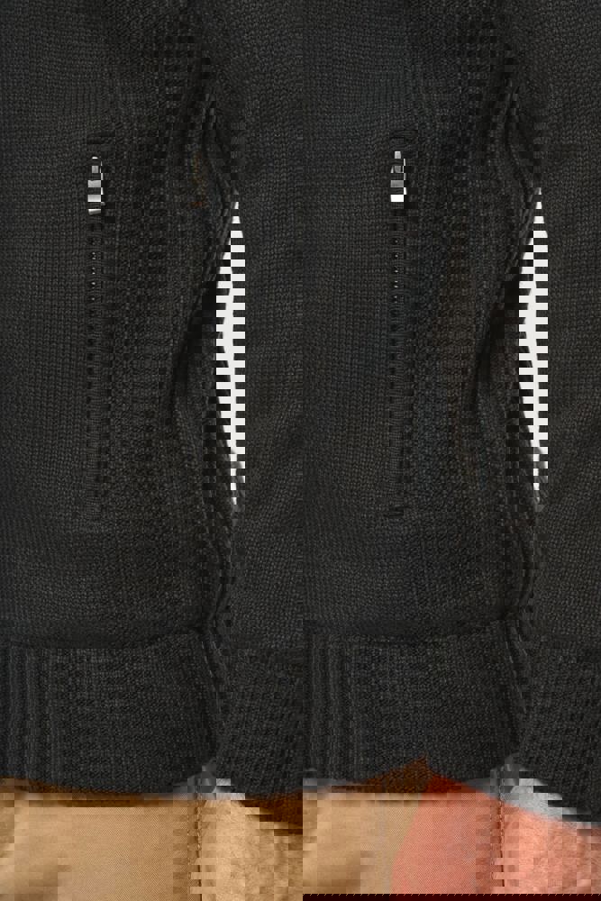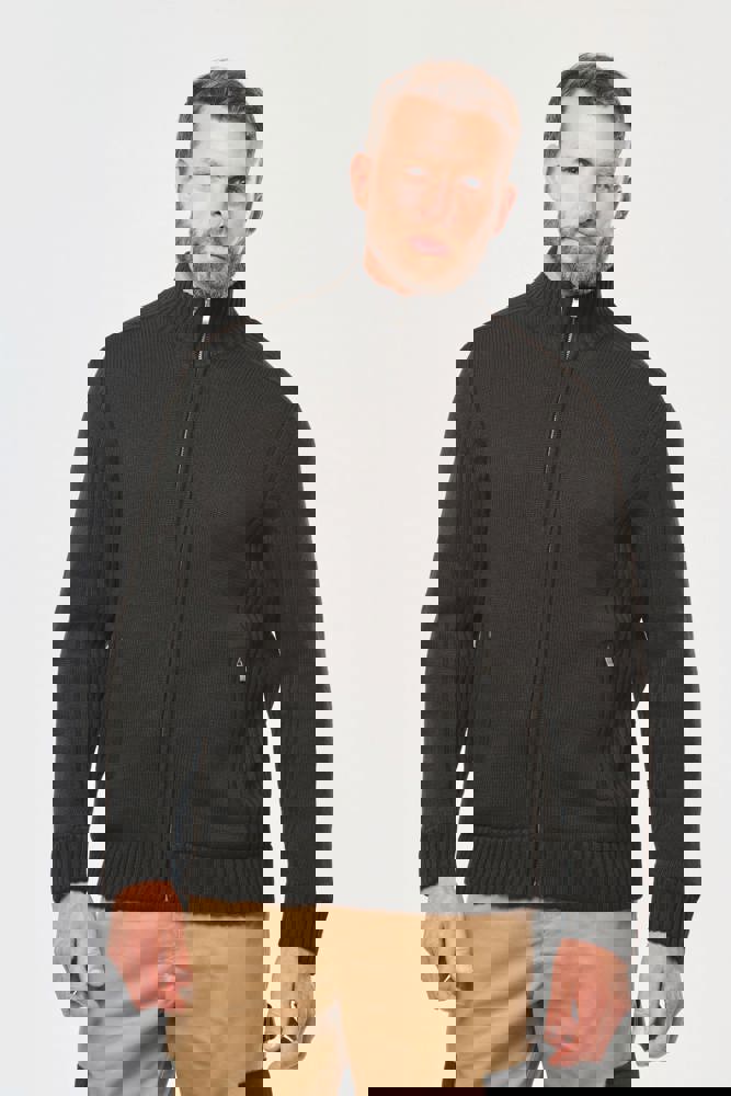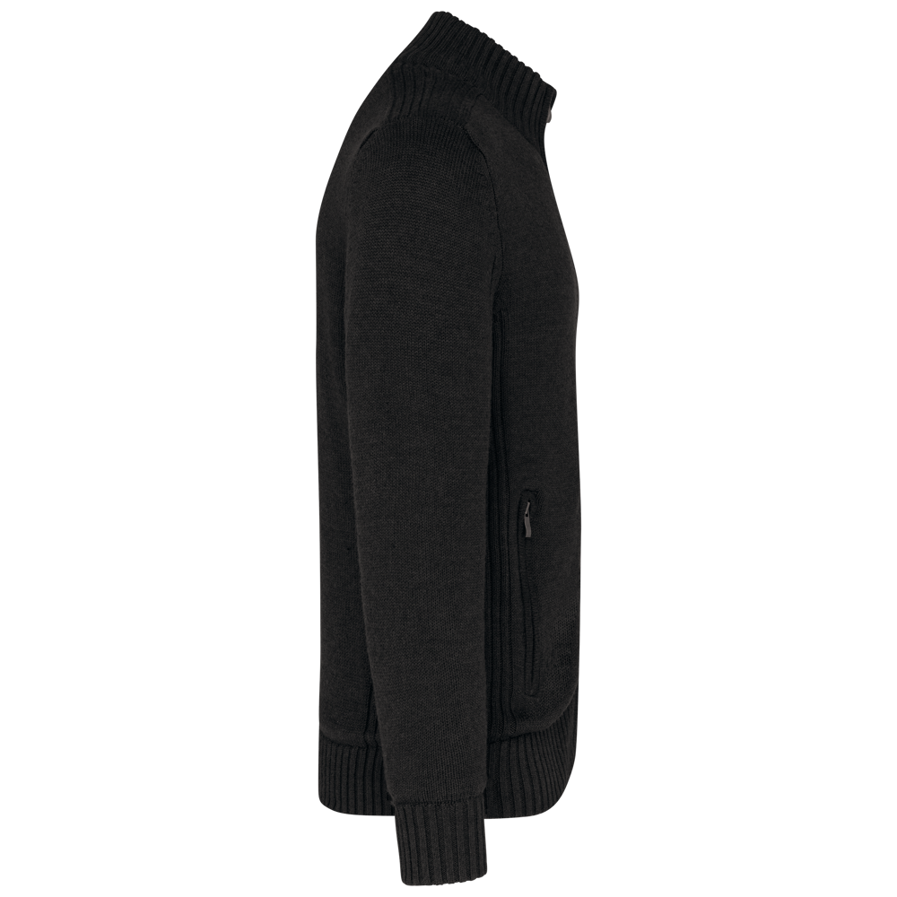 Buitenkant: 50% katoen / 50% acryl. Binnenkant: 100% microfleece polyester. Mouwvoering en binnenvoering van polyester. Warme en comfortabele stoffen. 2 ritszakken aan de voorkant. Gebreid 2 x 2 rib aan schouders, zijkanten en mouwen. 2 x 2 gevoerd ribboord aan halsopening, mouwuiteinden en onderkant. Verborgen drukkersrits onderaan en aan de zijkant binnenin.