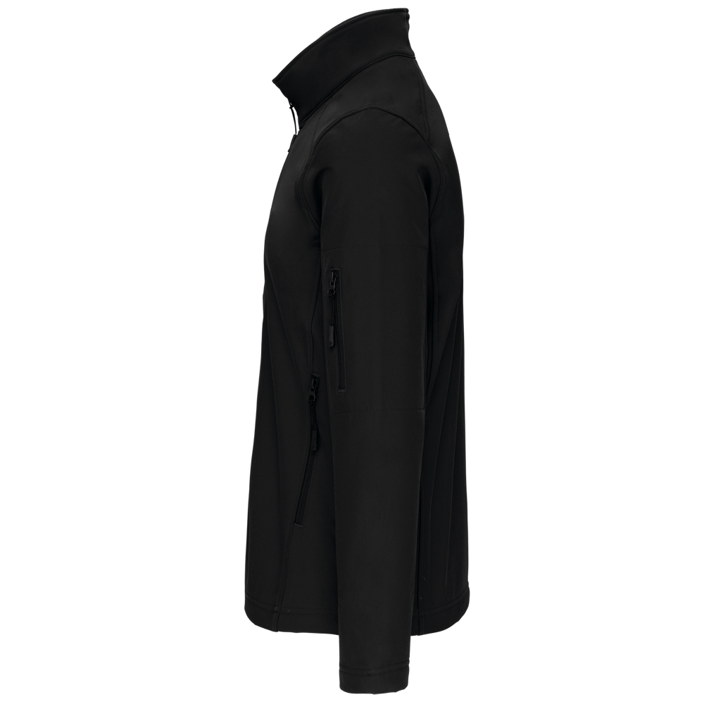 Stof in 3 lagen aan elkaar geklit, ademend 3000 g/m2/24H en 8000 mm waterdicht. Buitenkant: 95% polyester / 5% elasthan. Tussenlaag: ademend membraan. Binnenkant: microfleece. Ritssluiting. Zakken met rits aan de voorkant. 1 zak met rits op de linkermouw.