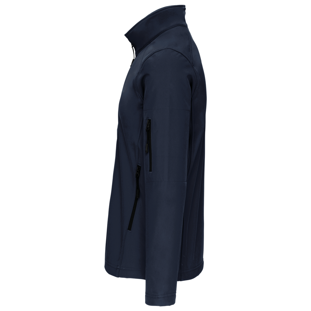 Stof in 3 lagen aan elkaar geklit, ademend 3000 g/m2/24H en 8000 mm waterdicht. Buitenkant: 95% polyester / 5% elasthan. Tussenlaag: ademend membraan. Binnenkant: microfleece. Ritssluiting. Zakken met rits aan de voorkant. 1 zak met rits op de linkermouw.