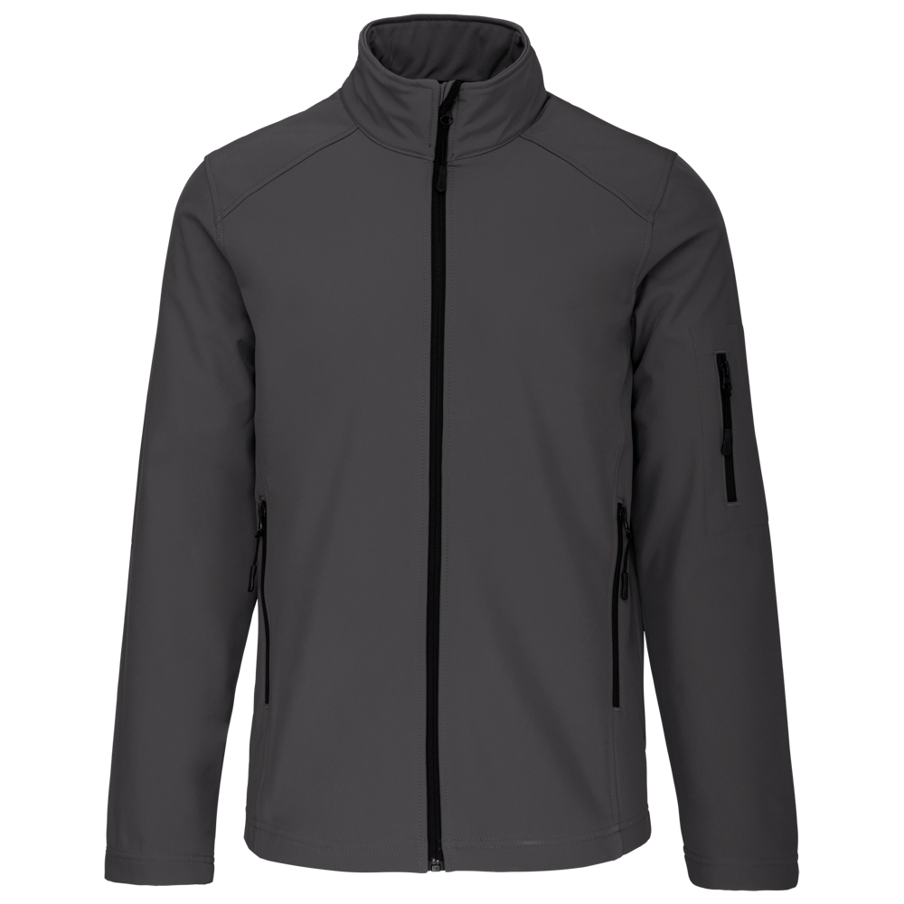 Stof in 3 lagen aan elkaar geklit, ademend 3000 g/m2/24H en 8000 mm waterdicht. Buitenkant: 95% polyester / 5% elasthan. Tussenlaag: ademend membraan. Binnenkant: microfleece. Ritssluiting. Zakken met rits aan de voorkant. 1 zak met rits op de linkermouw.