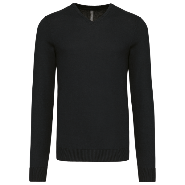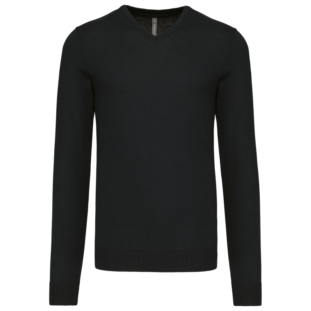 50% katoen / 50% acryl (gauge 12). Rechte snit. 2-laagse kraag in rib. Nektape.