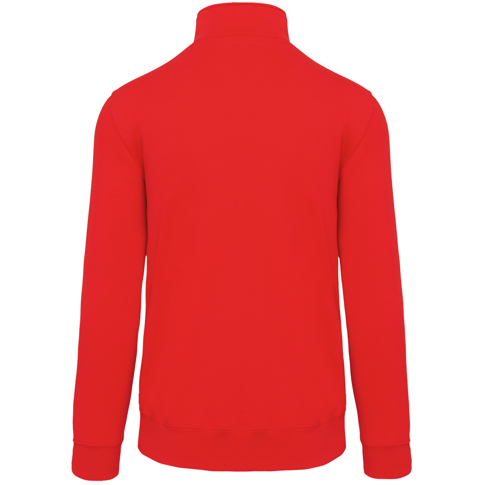 80% katoen / 20% polyester (Ash Heather : 79% katoen / 20% polyester / 1% viscose). Buitenoppervlak 100% katoen. LSF-behandeling (Low Shrinkage Fleece : voorgekrompen fleece). Aan de binnenkant geborsteld fleece 3 draden van gekamd katoen. Ingezette mouwen. Kraag met toon-op-toon plastic ritssluiting. Nektape in contrasterende kleur aan de halsopening (Navy voor de kleur Oxford Grey en Ash Heather ; Oxford Grey voor alle andere kleuren). Ribboord aan mouwuiteinden en aan de onderkant.