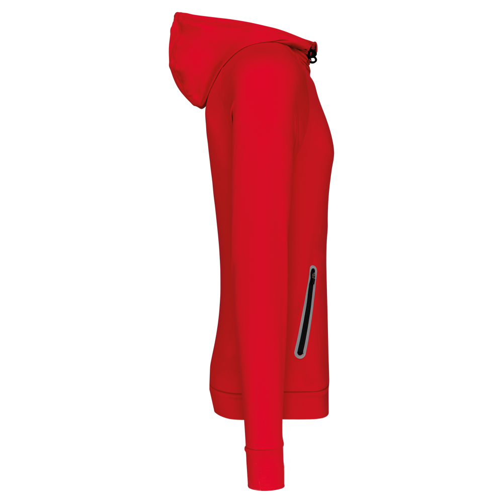 90% polyester / 10% elasthan. Ultrazacht geborsteld jersey. Raglanmouwen. 2 reflecterende ritszakken. Ritsen en koorden : White voor de kleur Navy, Black voor de kleur Red en Sport Grey Melange en Lime voor de kleur Dark Grey.