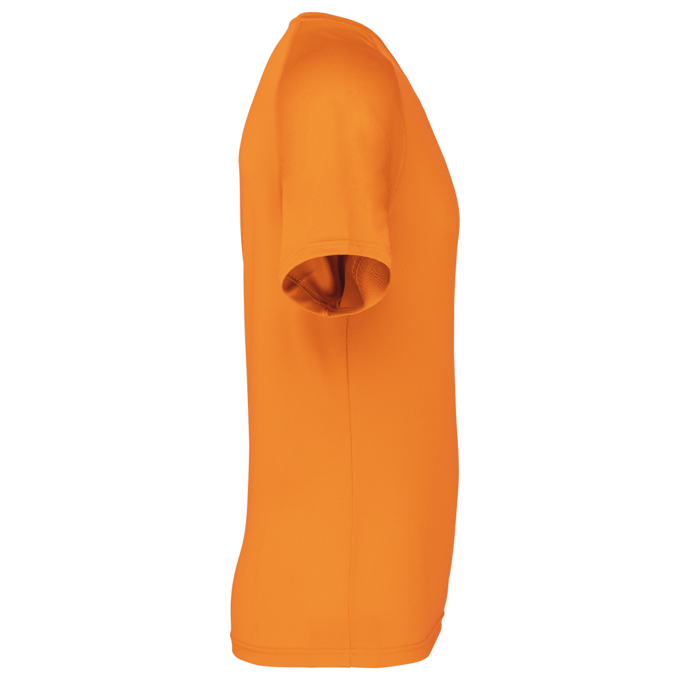 100% polyester. Sneldrogende lichte stof. Ronde hals. Nektape. Raglan mouwen met overstiksels. Afwerking met dubbele stiksels aan de mouwuiteinden en onderkant.