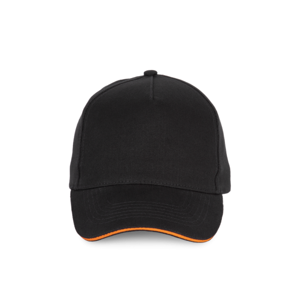 100% katoen. Pet met 5 panelen. Verstelbare sluiting met metalen gesp en zelfblokkerende lus.