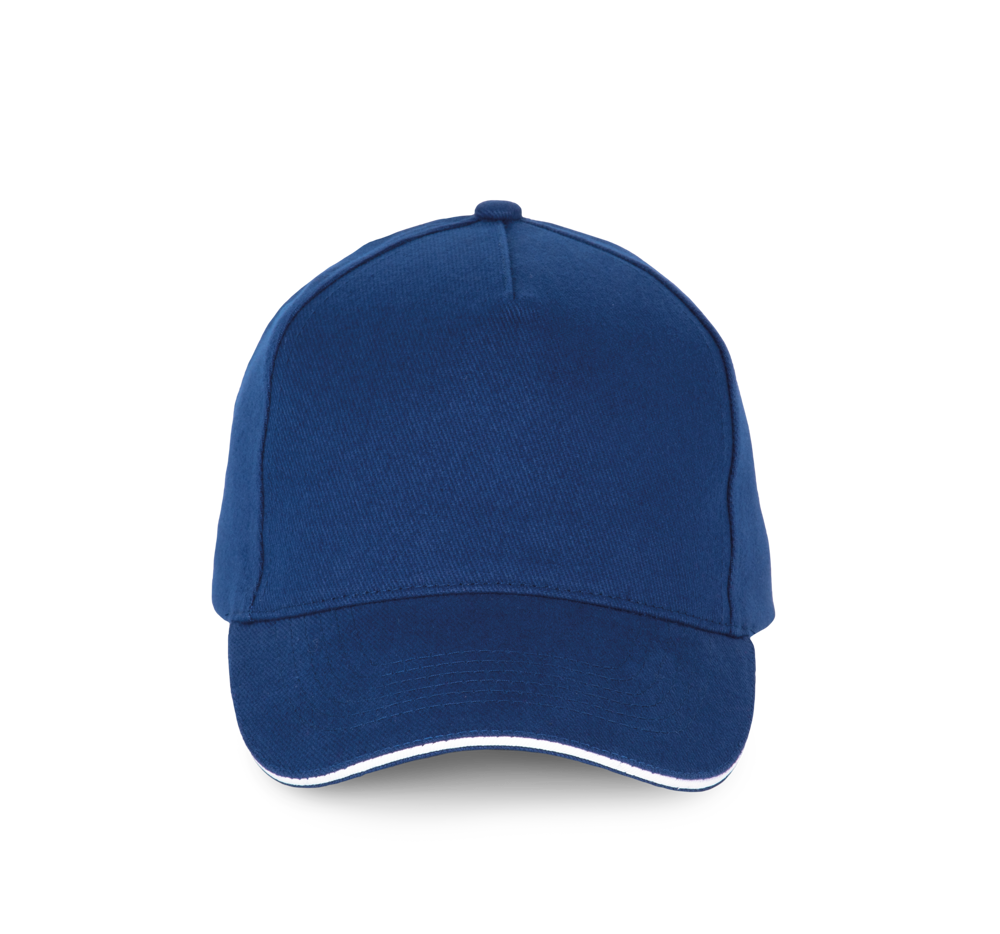 100% katoen. Pet met 5 panelen. Verstelbare sluiting met metalen gesp en zelfblokkerende lus.