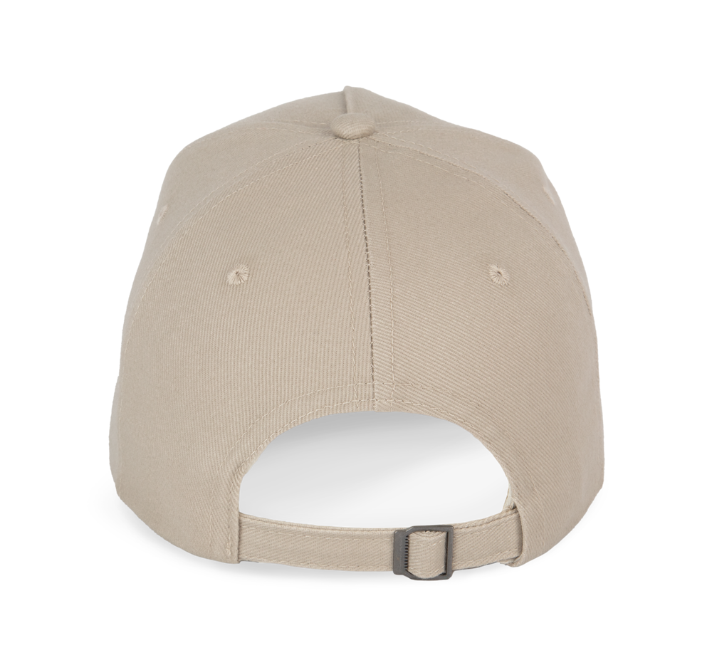 100% katoen. Pet met 5 panelen. Verstelbare sluiting met metalen gesp en zelfblokkerende lus.