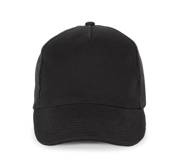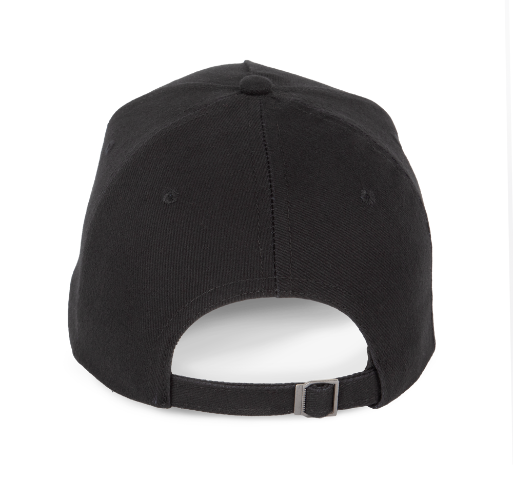 100% katoen. Pet met 5 panelen. Verstelbare sluiting met metalen gesp en zelfblokkerende lus.