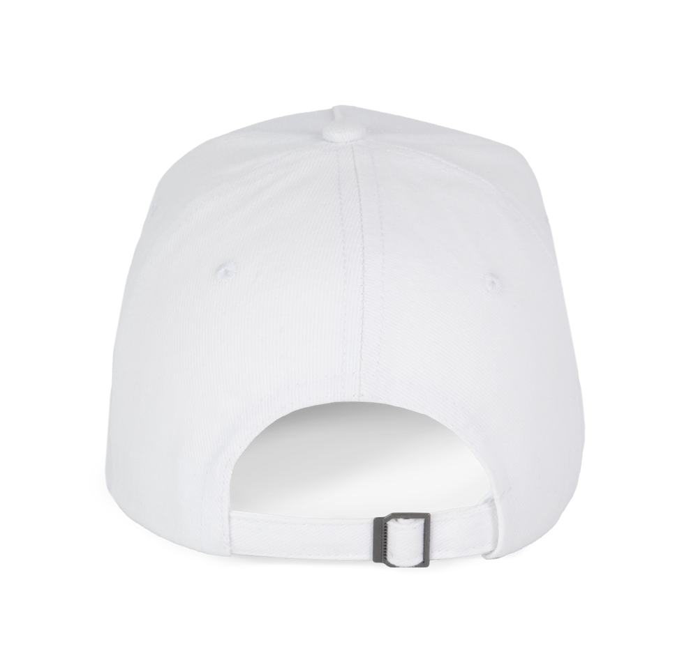 100% katoen. Pet met 5 panelen. Verstelbare sluiting met metalen gesp en zelfblokkerende lus.
