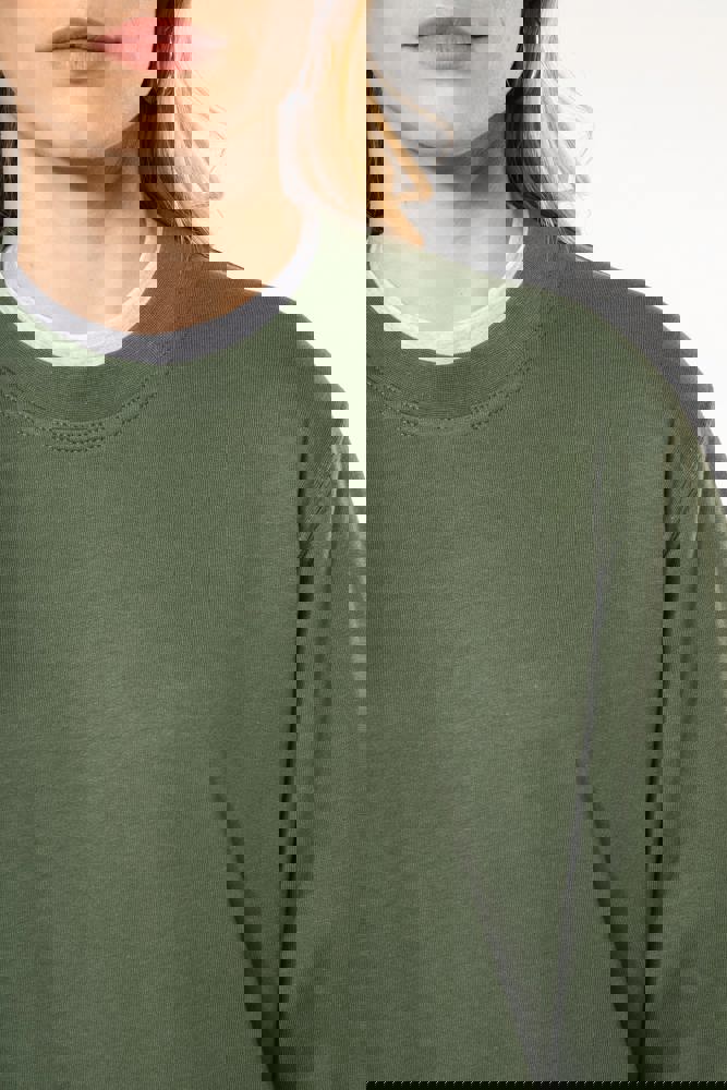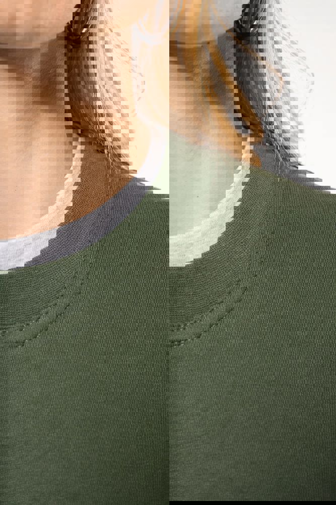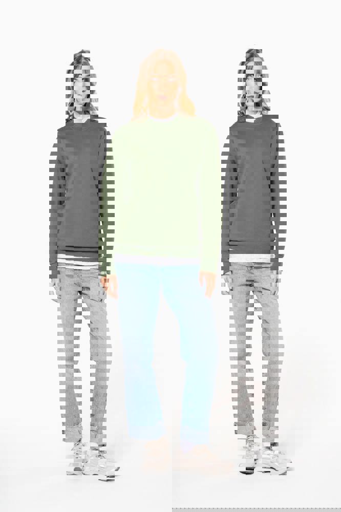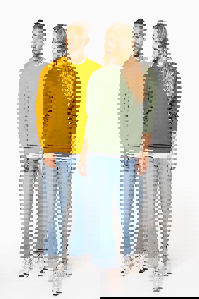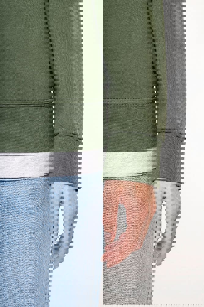 80% katoen/ 20% polyester. Gekamd katoen. Geborsteld fleece aan de binnenkant. Ingezette mouwen. Ribboord aan halsopening, mouwuiteinden en aan de onderkant.