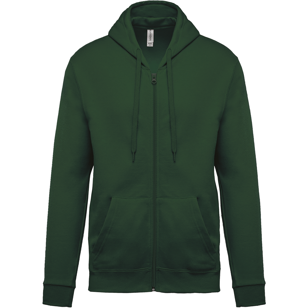 80% katoen / 20% polyester. Gekamd katoen. Geborsteld fleece aan de binnenkant. Ingezette mouwen. Nylon ritssluiting. Gevoerde capuchon met toon op toon aanrijgkoordjes. Kangoeroezakken. Ribboord aan mouwuiteinden en aan de onderkant.