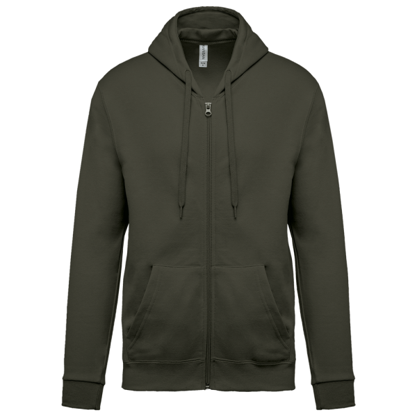 80% katoen / 20% polyester. Gekamd katoen. Geborsteld fleece aan de binnenkant. Ingezette mouwen. Nylon ritssluiting. Gevoerde capuchon met toon op toon aanrijgkoordjes. Kangoeroezakken. Ribboord aan mouwuiteinden en aan de onderkant.