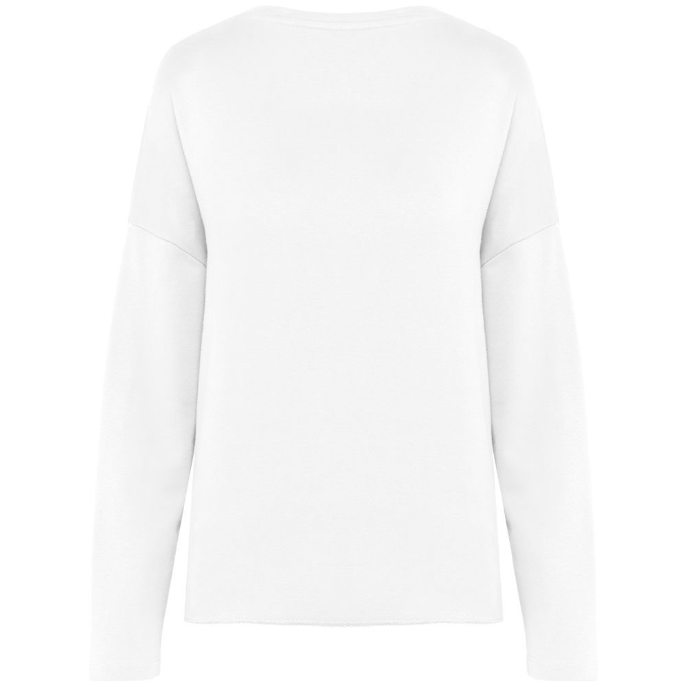 91% katoen / 9% polyester (Light Grey Heather: 87% katoen / 9% polyester / 4% viscose). Fleece “French Terry”. Voelt heel zacht aan. Casual, losse snit met brede halsopening. Nektape met visgraatmotief. Onafgewerkte boorden onderaan. Dubbel stiksel aan de mouwuiteinden.