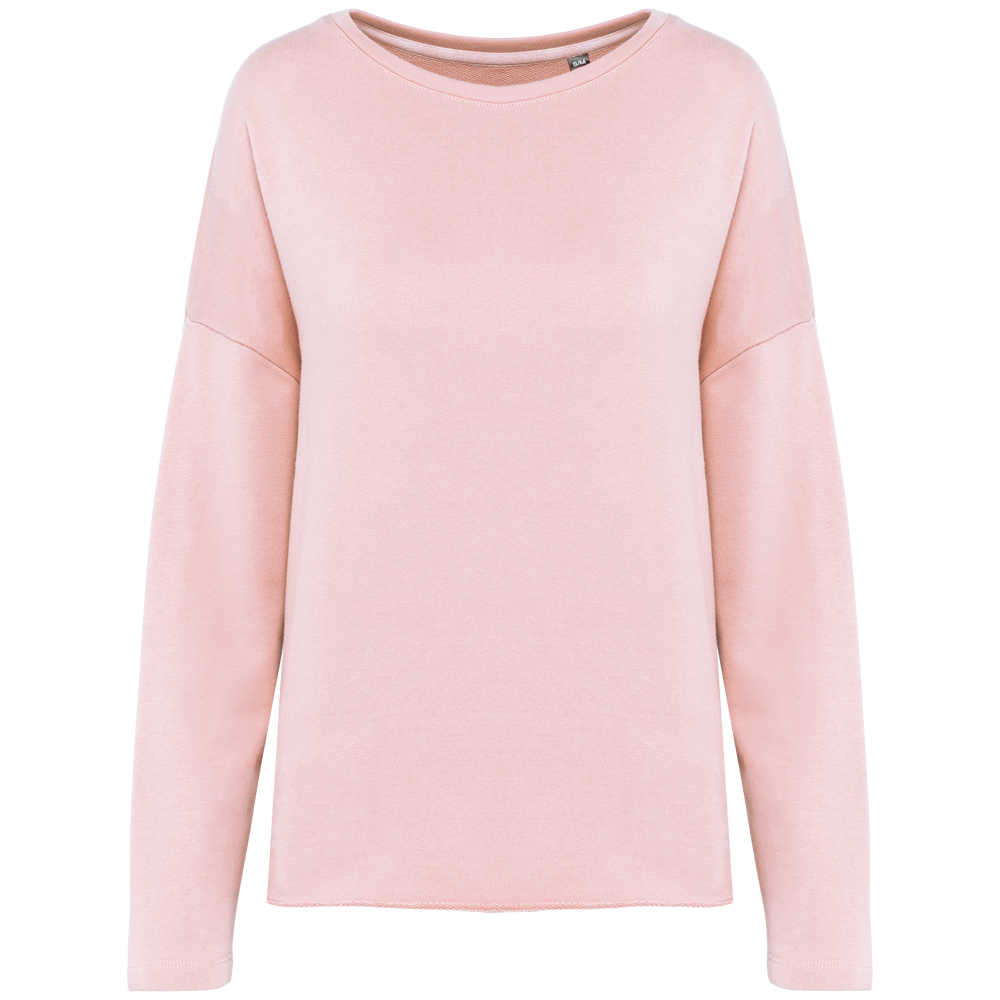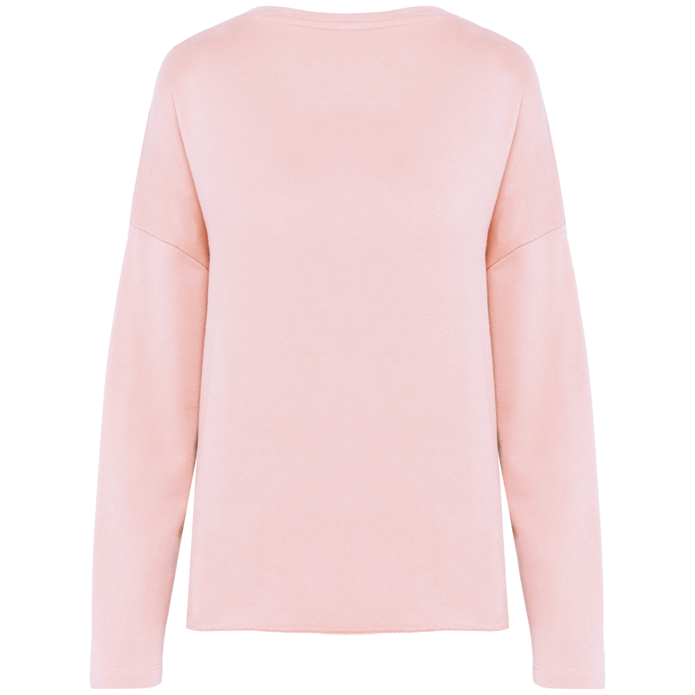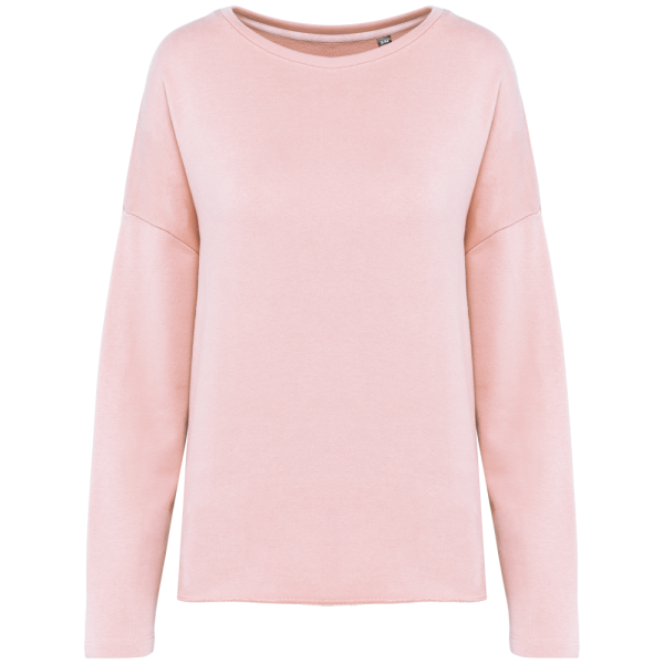 91% katoen / 9% polyester (Light Grey Heather: 87% katoen / 9% polyester / 4% viscose). Fleece “French Terry”. Voelt heel zacht aan. Casual, losse snit met brede halsopening. Nektape met visgraatmotief. Onafgewerkte boorden onderaan. Dubbel stiksel aan de mouwuiteinden.