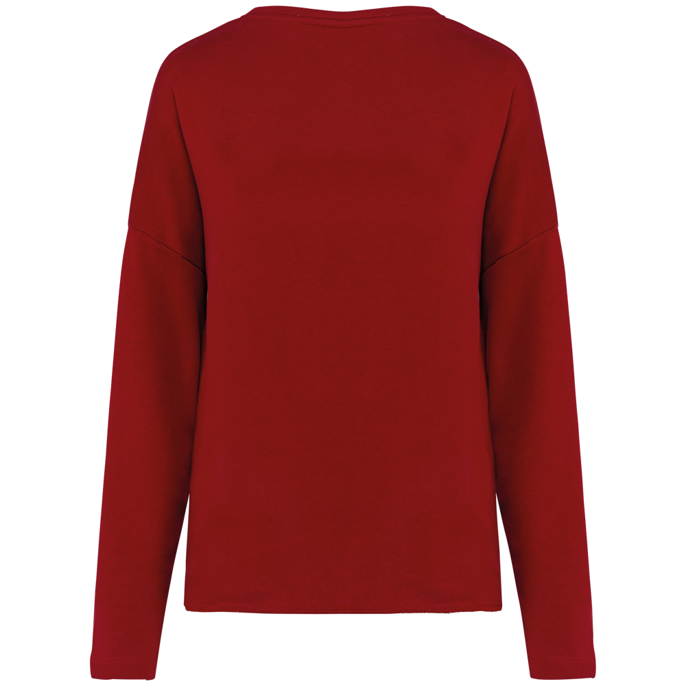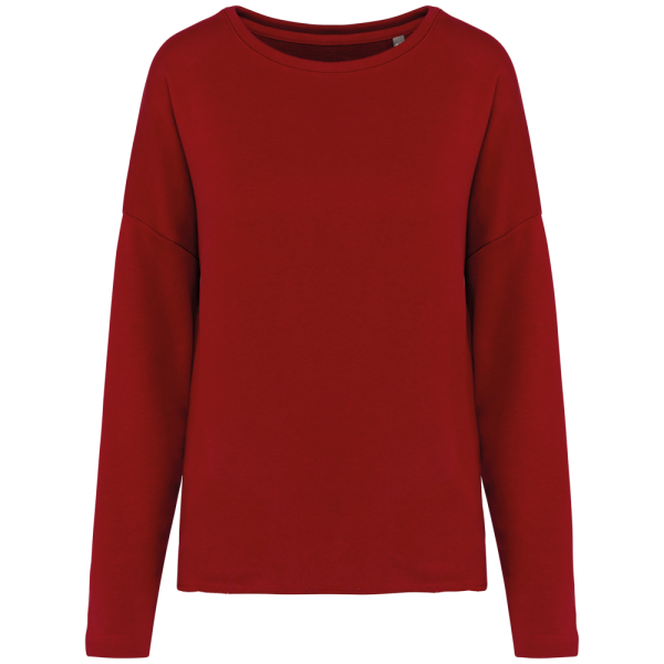 91% katoen / 9% polyester (Light Grey Heather: 87% katoen / 9% polyester / 4% viscose). Fleece “French Terry”. Voelt heel zacht aan. Casual, losse snit met brede halsopening. Nektape met visgraatmotief. Onafgewerkte boorden onderaan. Dubbel stiksel aan de mouwuiteinden.