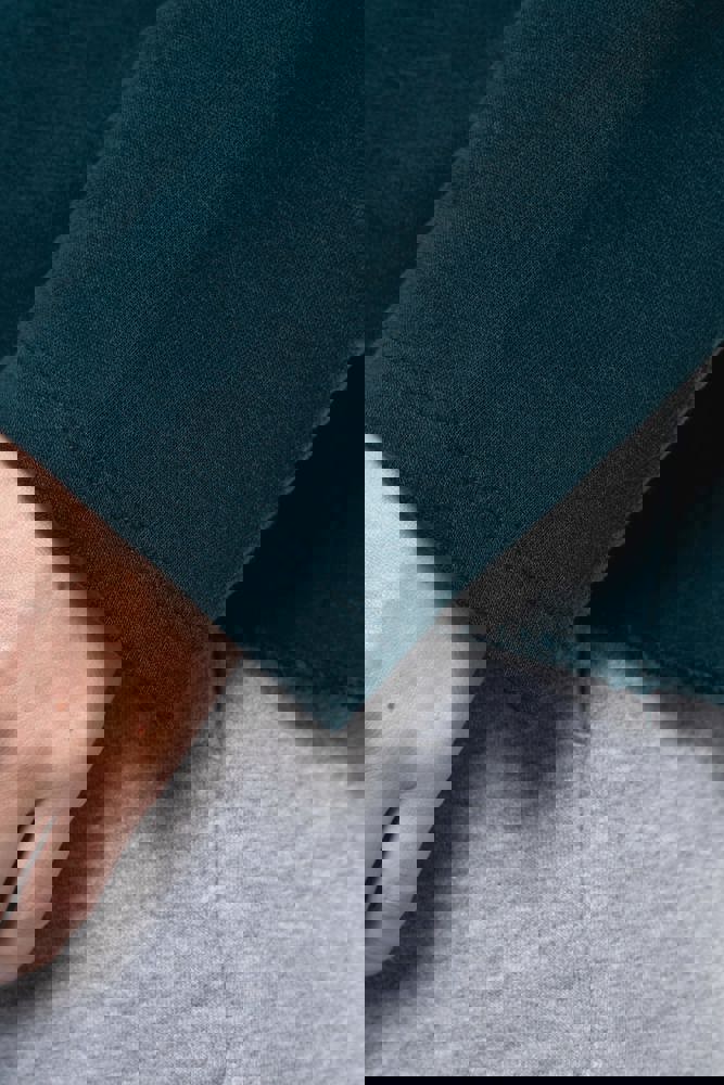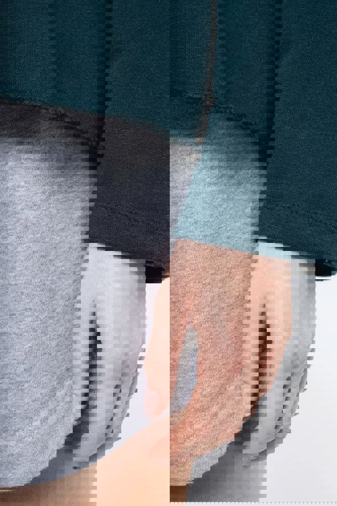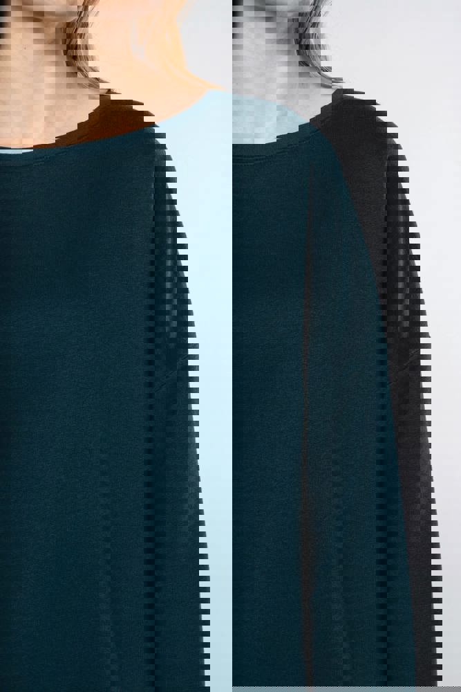 91% katoen / 9% polyester (Light Grey Heather: 87% katoen / 9% polyester / 4% viscose). Fleece “French Terry”. Voelt heel zacht aan. Casual, losse snit met brede halsopening. Nektape met visgraatmotief. Onafgewerkte boorden onderaan. Dubbel stiksel aan de mouwuiteinden.