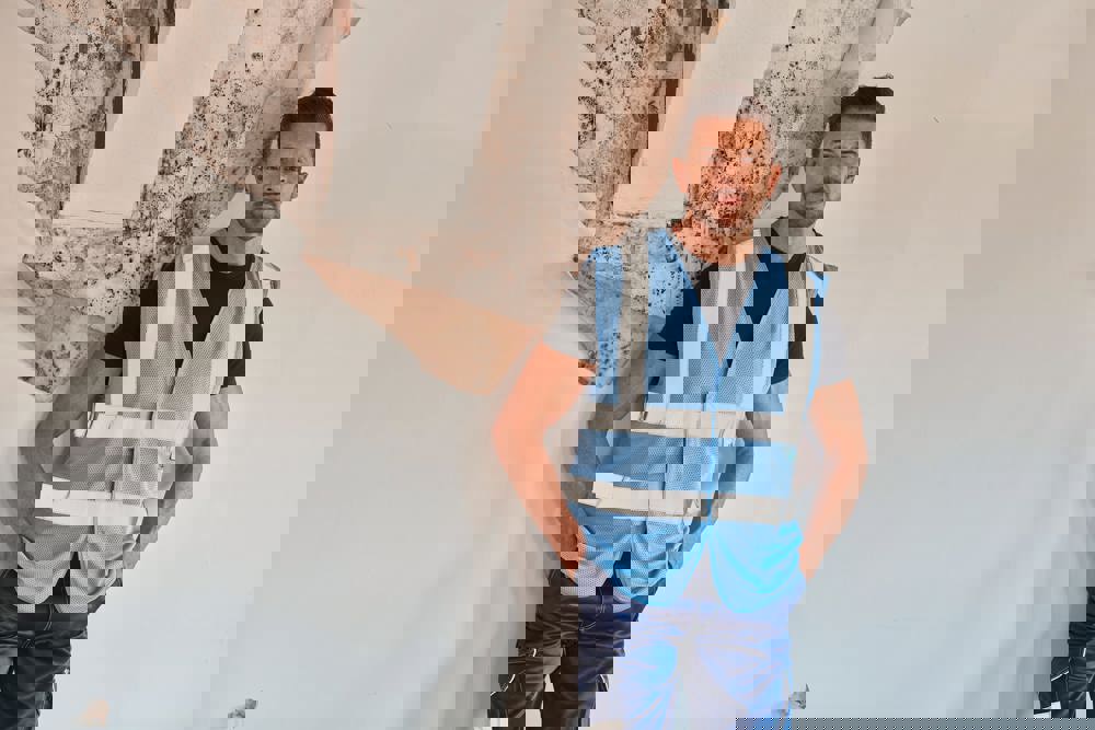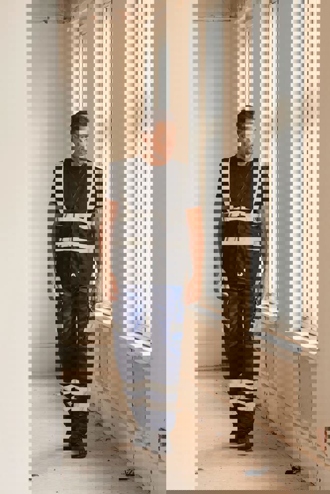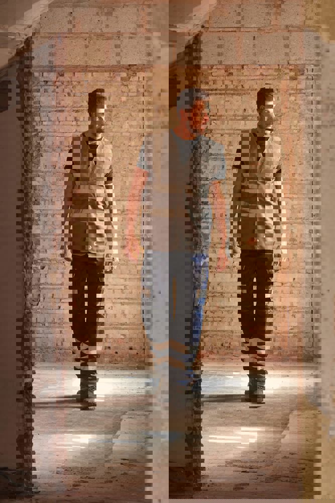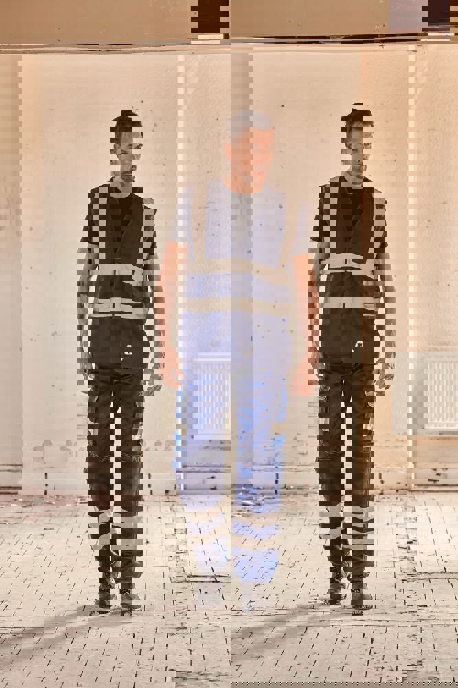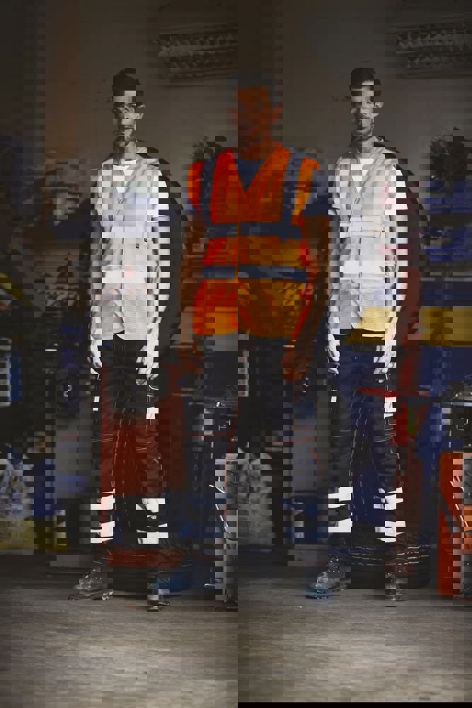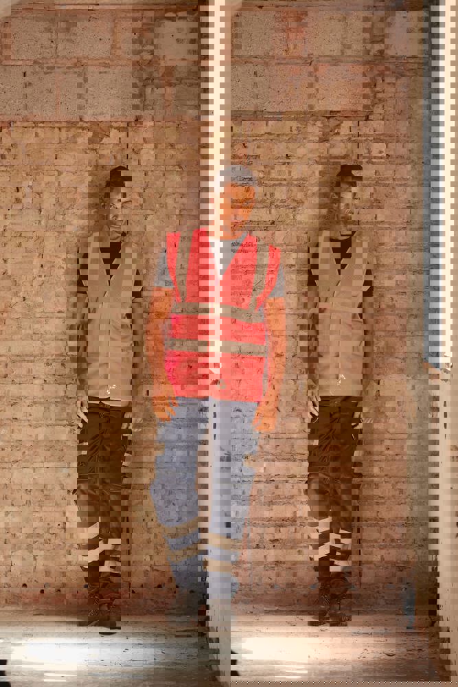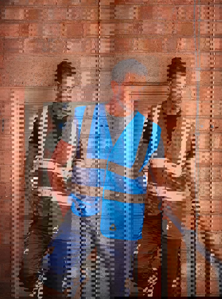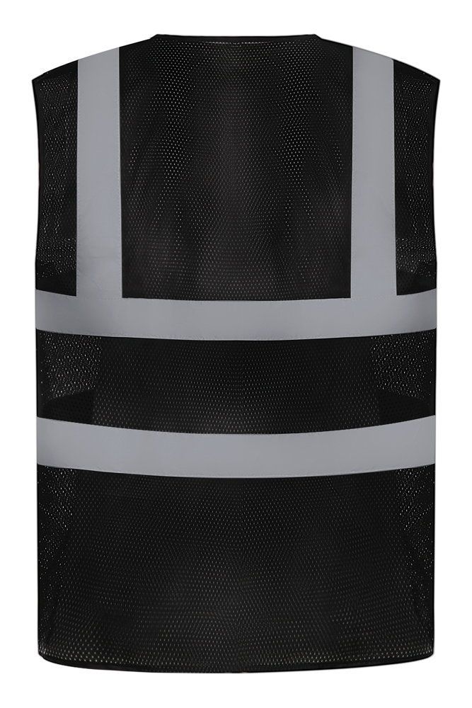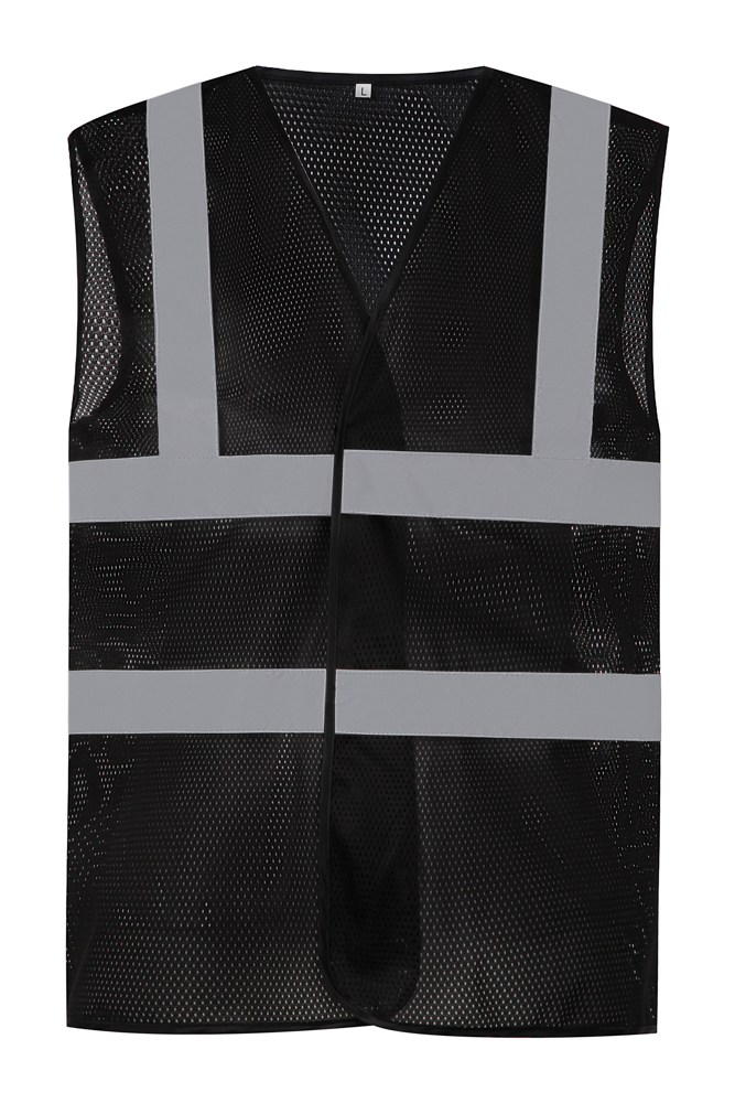 100% polyester. 100% gerecycled polyester. Gemaakt van petflessen. Gemaakt van ademende, licht gebreide gaas. 5 cm brede reflectieband rond het lichaam en over elke schouder. Velcro® sluiting vooraan. Conform aan de Amerikaanse Nationale Norm ANSI/ISEA 107-2004 en Europese EN ISO20471:2013 Klasse 2 : enkel Hi-Vis Orange en H-Vis Yellow.