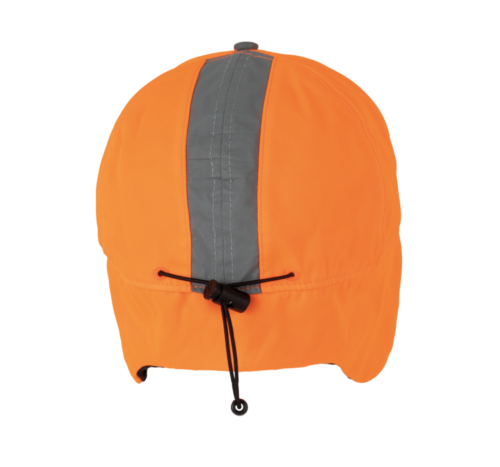 100% polyester. 6 panelen met oorbeschermers. Fluoriserende pet met fleece aan de binnenkant. Verstelbaar aanrijgkoord en stopper.