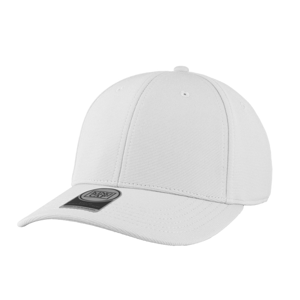 6 panel sports cap met frontvoering. Medium profile. Velcro sluiting met kunststof gesp voorzien van een klein elastisch bandje. Uitgevoerd in 97% gerecycled ottoman en 3% spandex.
