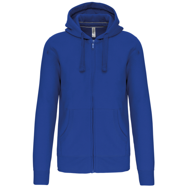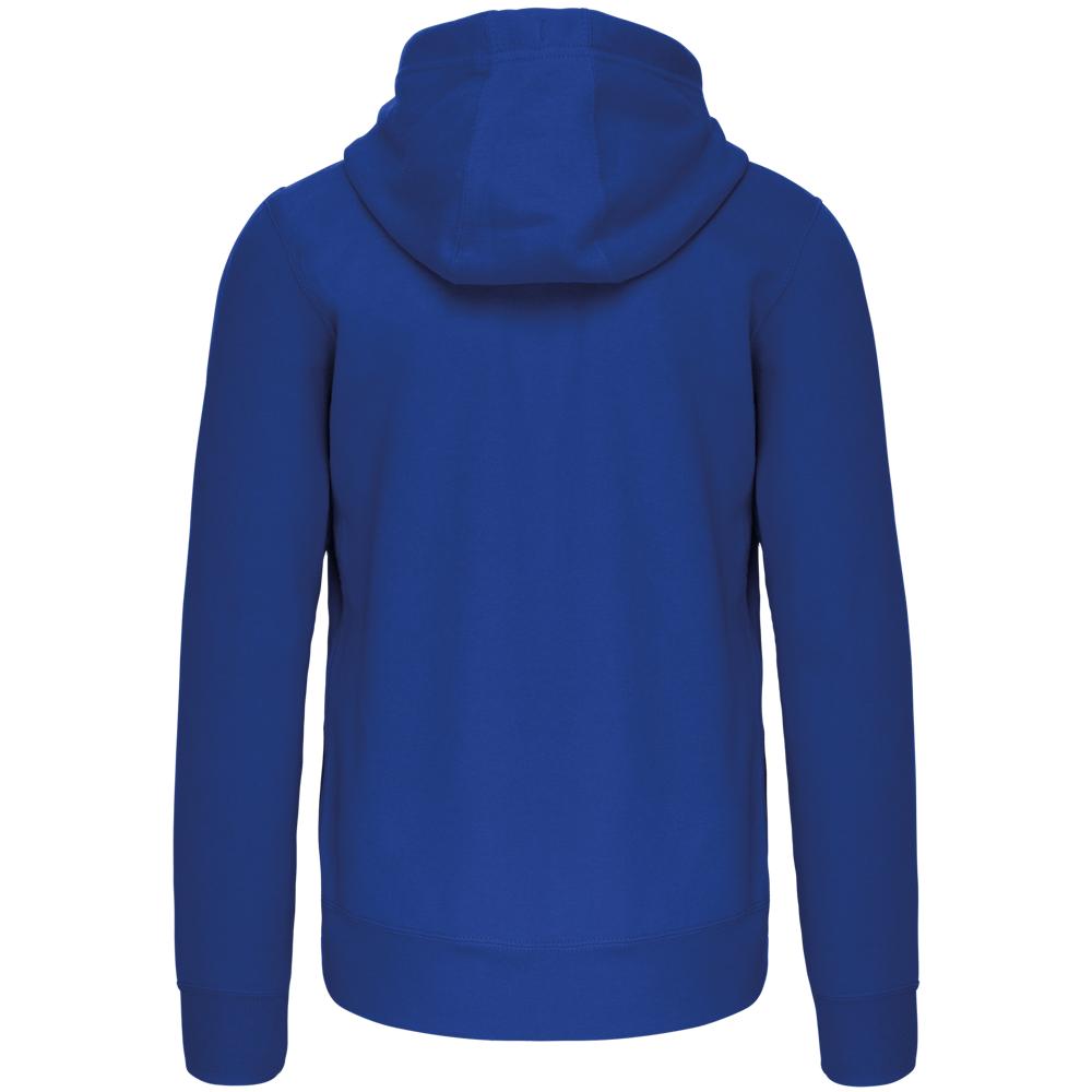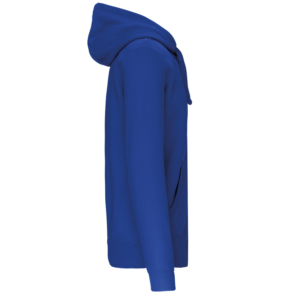 80% katoen / 20% polyester (Ash Heather: 79% katoen / 20% polyester / 1% viscose). Buitenoppervlak 100% gekamd katoen. Geborsteld fleece aan de binnenkant. Nektape in contrastkleur. (Navy voor de kleur Oxford Grey en Ash Heather ; Oxford Grey voor alle andere kleuren). Gevoerde capuchon in honinggraatstructuur met aanrijgkoordje. 'Kangaroe' zakken. Afwerking in rib aan de zakken, mouwuiteinden en onderaan. Ritssluiting.