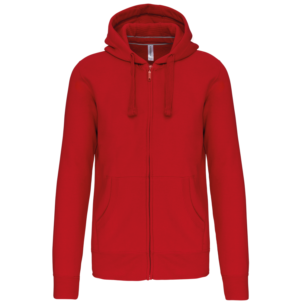 80% katoen / 20% polyester (Ash Heather: 79% katoen / 20% polyester / 1% viscose). Buitenoppervlak 100% gekamd katoen. Geborsteld fleece aan de binnenkant. Nektape in contrastkleur. (Navy voor de kleur Oxford Grey en Ash Heather ; Oxford Grey voor alle andere kleuren). Gevoerde capuchon in honinggraatstructuur met aanrijgkoordje. 'Kangaroe' zakken. Afwerking in rib aan de zakken, mouwuiteinden en onderaan. Ritssluiting.