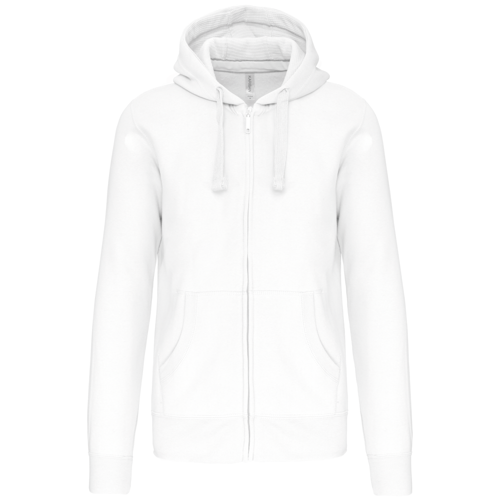 80% katoen / 20% polyester (Ash Heather: 79% katoen / 20% polyester / 1% viscose). Buitenoppervlak 100% gekamd katoen. Geborsteld fleece aan de binnenkant. Nektape in contrastkleur. (Navy voor de kleur Oxford Grey en Ash Heather ; Oxford Grey voor alle andere kleuren). Gevoerde capuchon in honinggraatstructuur met aanrijgkoordje. 'Kangaroe' zakken. Afwerking in rib aan de zakken, mouwuiteinden en onderaan. Ritssluiting.