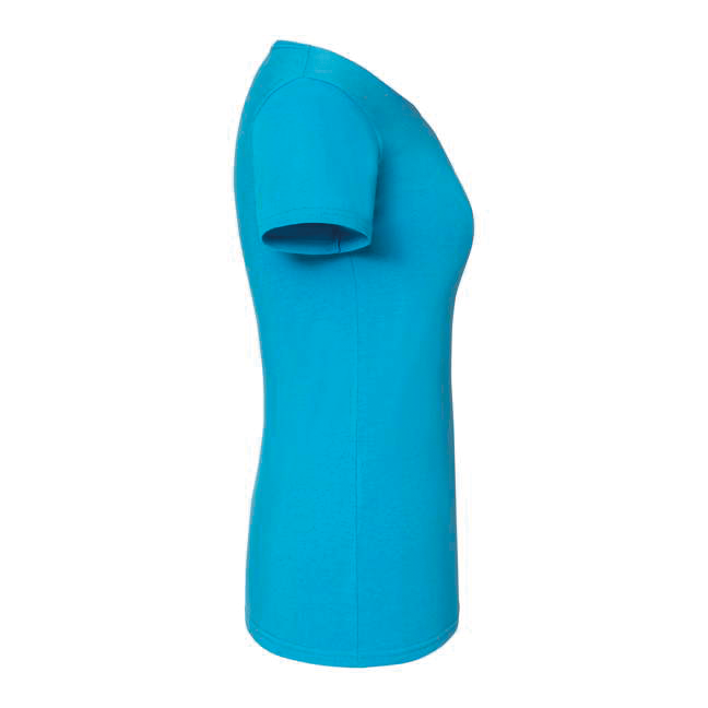 100% gekamd ringgesponnen katoen (Heather Grey: 97% katoen / 3% polyester en Dark Heather Grey: 52% katoen / 48% polyester). Ronde kraag met nektape aan de binnenkant. Zijnaden voor een getailleerde, vrouwelijke snit. Voelt zacht aan.