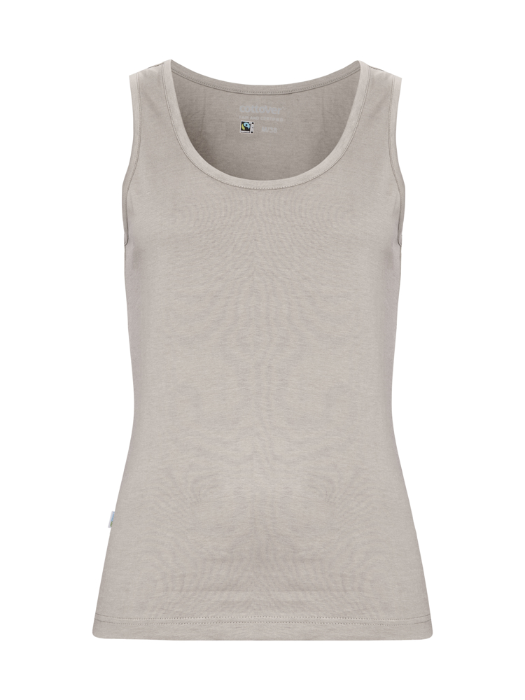 Classic tanktop met brede schouderbanden in een netjes licht getailleerd model. Bies langs de halslijn en armsgaten. Gedrukt label op de achterkant van de nek.
