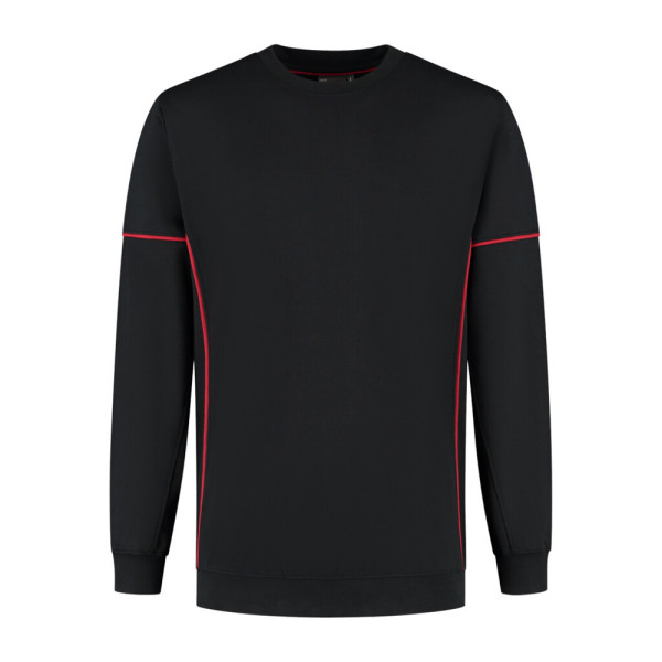 Sweater met contrast piping, 50% gerecycled polyester / 48% organisch katoen / 2% elastan (GRS gecertificeerd), 320 gr/m², french terry met geruwde binnenzijde, unisex, regular fit, ronde hals met 1x1 ribboord, mouw met contrast piping, tailleband en mouw met 1x1 ribboord, 3D logo transfer op onderzijde.