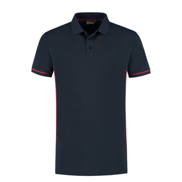 Poloshirt met contrast piping, 50% gerecycled polyester / 48% organisch katoen / 2% elastan (GRS gecertificeerd), 210 gr/m2, extra lange lengte (+8 cm), piqué, unisex, modern fit, korte mouw met 1x1 ribboord en contrast piping, plat gebreide kraag met 3 knoopsluiting, 3D logo transfer op onderzijde.