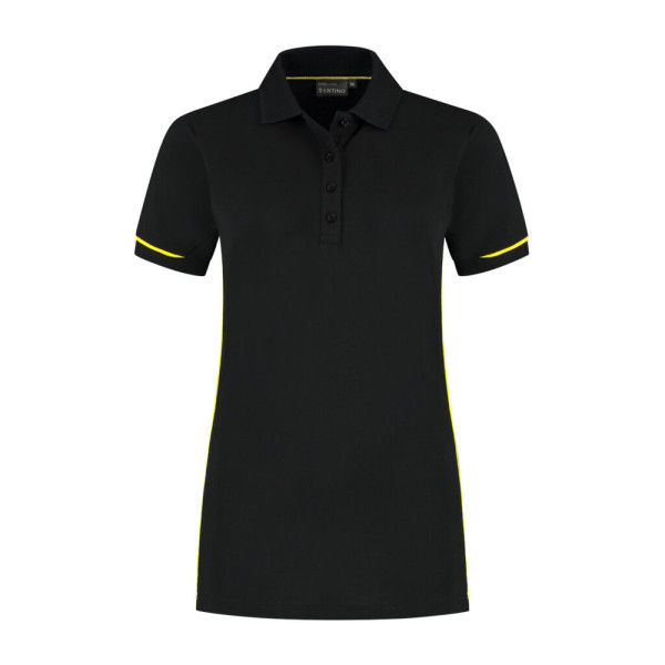 Poloshirt met contrast piping, 50% gerecycled polyester / 48% organisch katoen / 2% elastan (GRS gecertificeerd), 210 gr/m2, piqué, ladies fit, korte mouw met 1x1 ribboord en contrast piping, plat gebreide kraag met 4 knoopsluiting, 3D logo transfer op onderzijde.