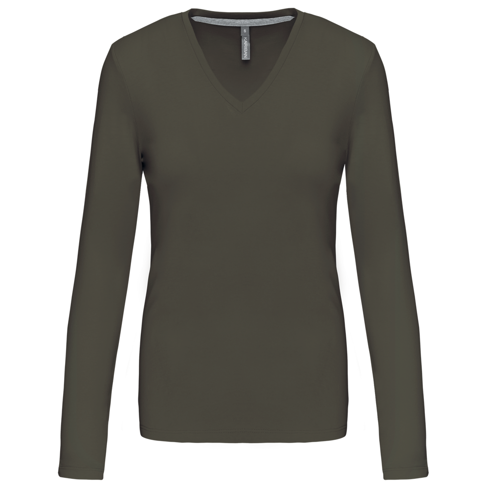 K382C - Dames t-shirt V-hals lange mouwen