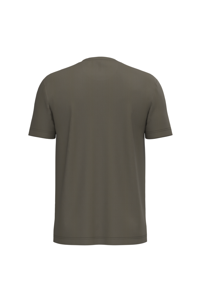 Effen kleuren : 100% katoen. Oxford Grey : 90% katoen / 10% viscose. Gekamd enzymbehandeld katoen. Rechte snit. Nektape (toon-op-toon voor White, Dark Grey voor Oxford Grey en Oxford Grey voor de overige kleuren). Afwerking met dubbele stiksels.