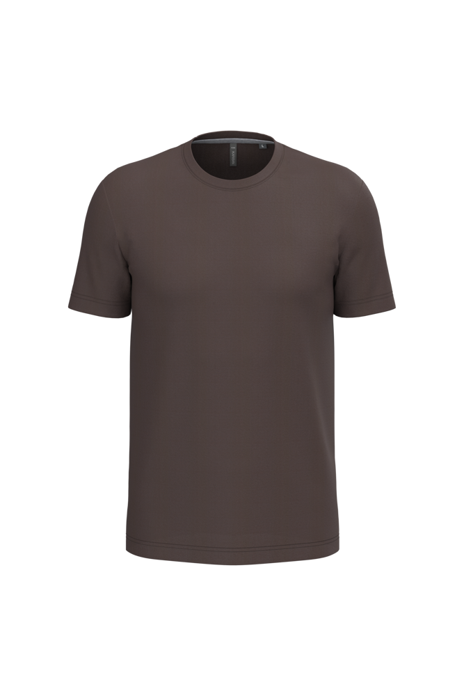Effen kleuren : 100% katoen. Oxford Grey : 90% katoen / 10% viscose. Gekamd enzymbehandeld katoen. Rechte snit. Nektape (toon-op-toon voor White, Dark Grey voor Oxford Grey en Oxford Grey voor de overige kleuren). Afwerking met dubbele stiksels.