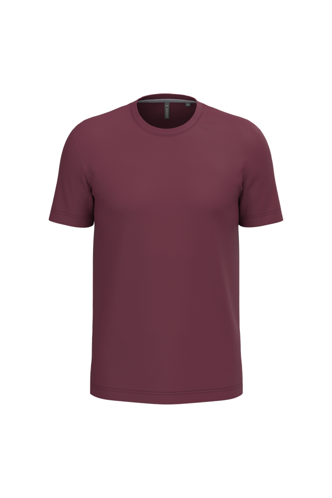 Effen kleuren : 100% katoen. Oxford Grey : 90% katoen / 10% viscose. Gekamd enzymbehandeld katoen. Rechte snit. Nektape (toon-op-toon voor White, Dark Grey voor Oxford Grey en Oxford Grey voor de overige kleuren). Afwerking met dubbele stiksels.