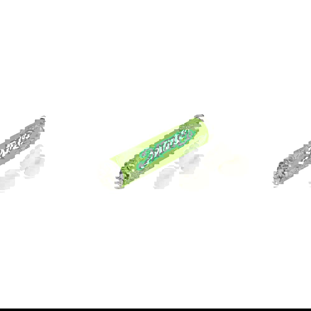 Druivensuiker rolletje voorzien van een all-over offset bedrukte wikkel, met 12 tabletjes in pepermuntsmaak