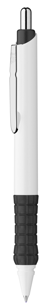 Balpen van ABS waarvan 30% gerecycled met rubberen grip, metalen clip en drukknop. X-20 vulling voor 2500 meter schrijven. Rondom zeefdruk in meer kleuren mogelijk.