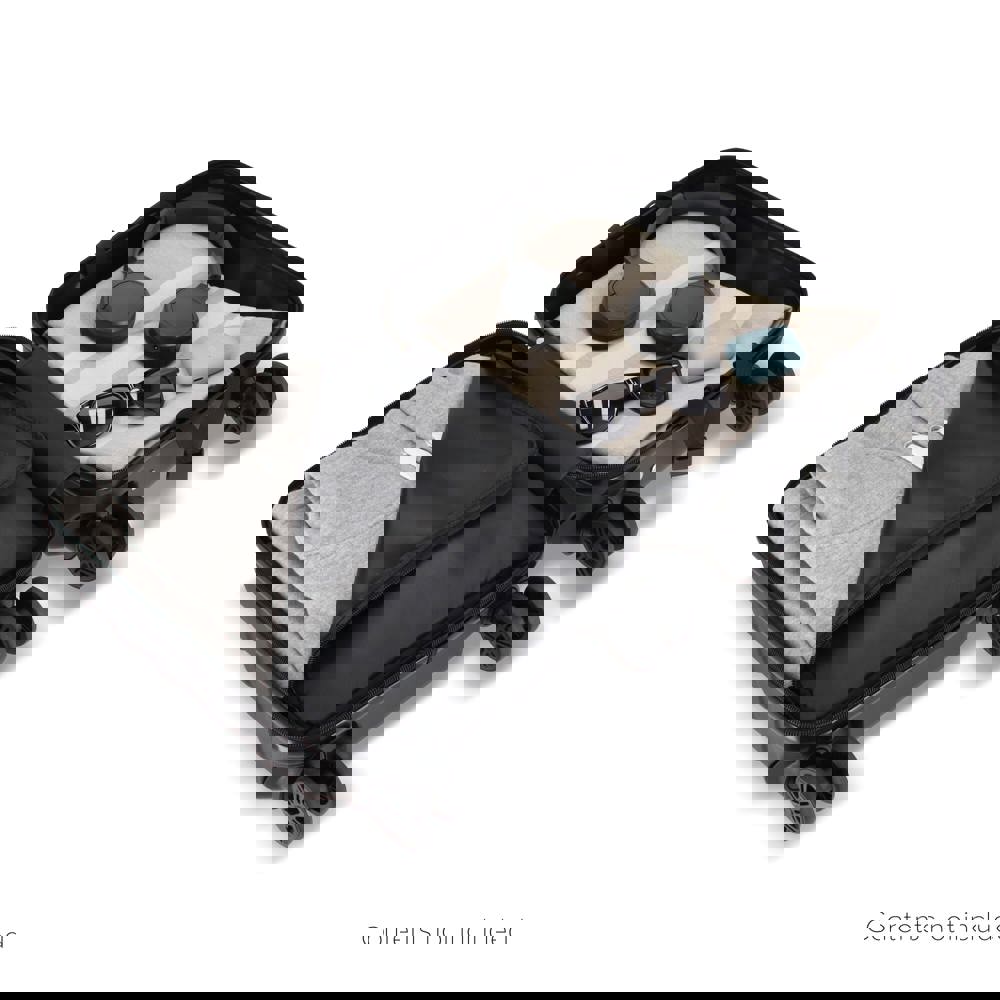 Deze compacte trolley in cabinformaat is ontworpen om te voldoen aan de afmetingslimieten van de meeste budgetluchtvaartmaatschappijen en past onder de stoel. Lichtgewicht en wendbaar dankzij de vier zwenkwielen. Voorzien van een cijferslot en een telefoonhouder in het handvat, waardoor wachten op luchthaven, station of perron een stuk aangenamer wordt.